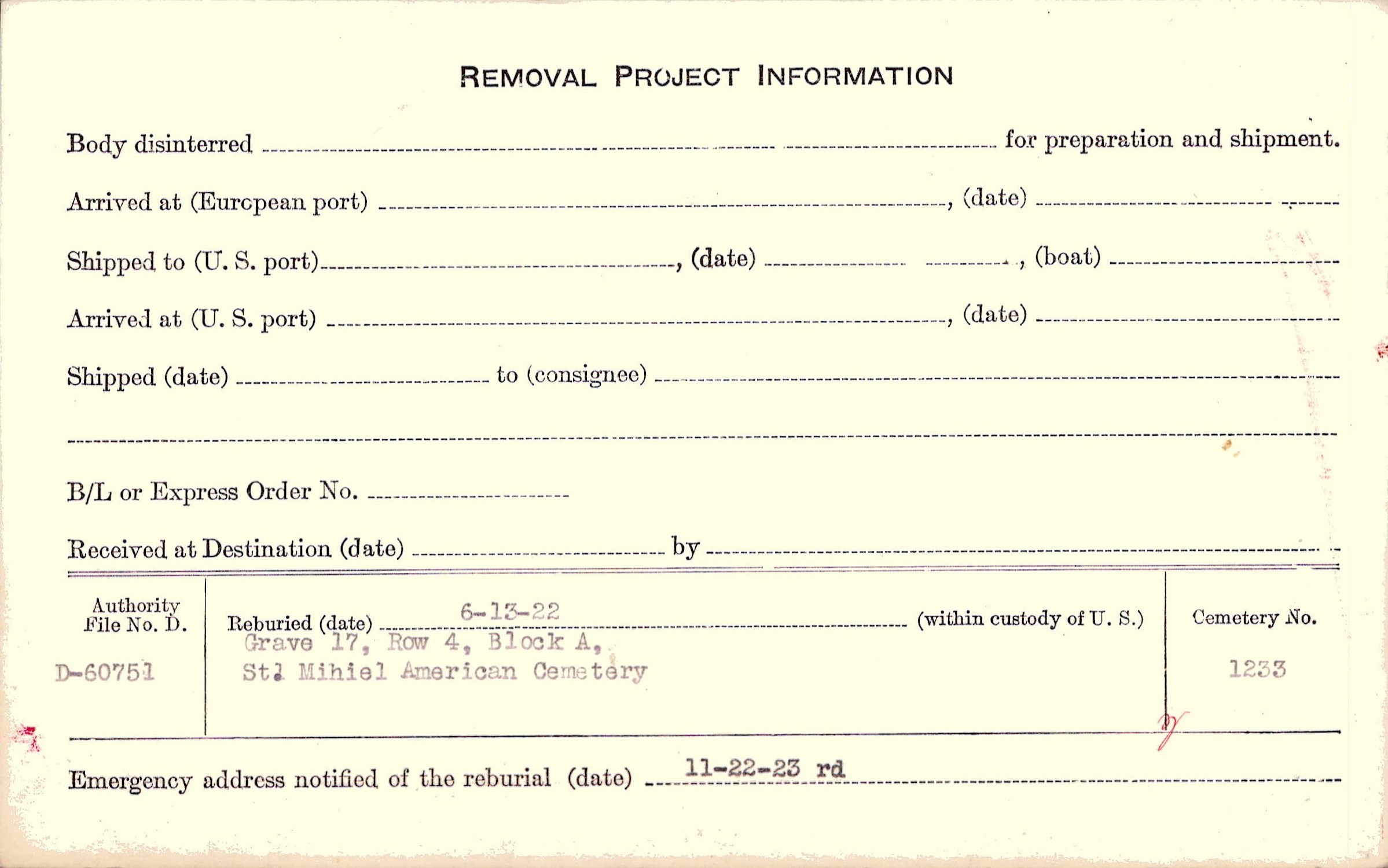 | Permanent Burial in Foreign Cemetery |