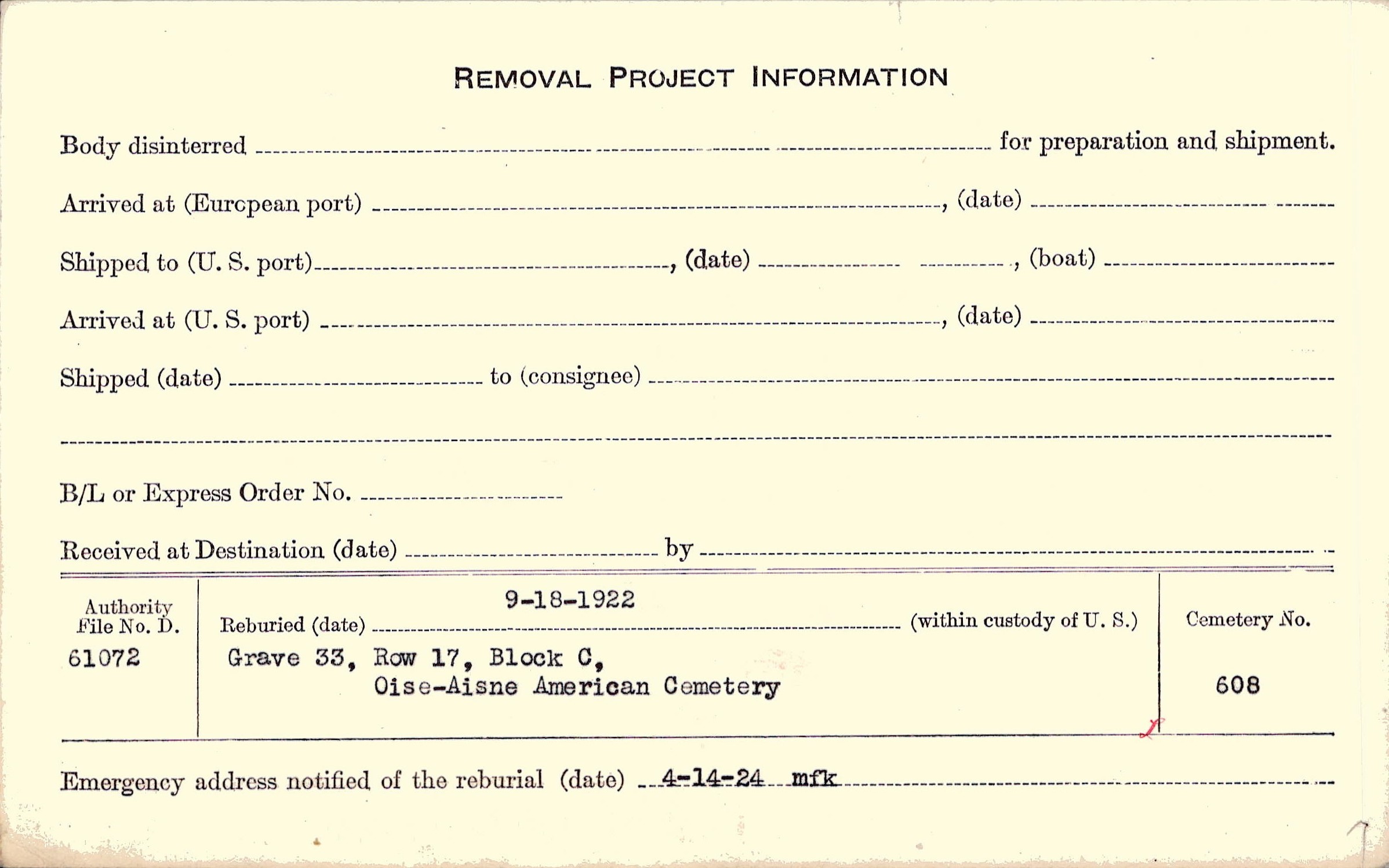 | Permanent Burial in Foreign Cemetery |