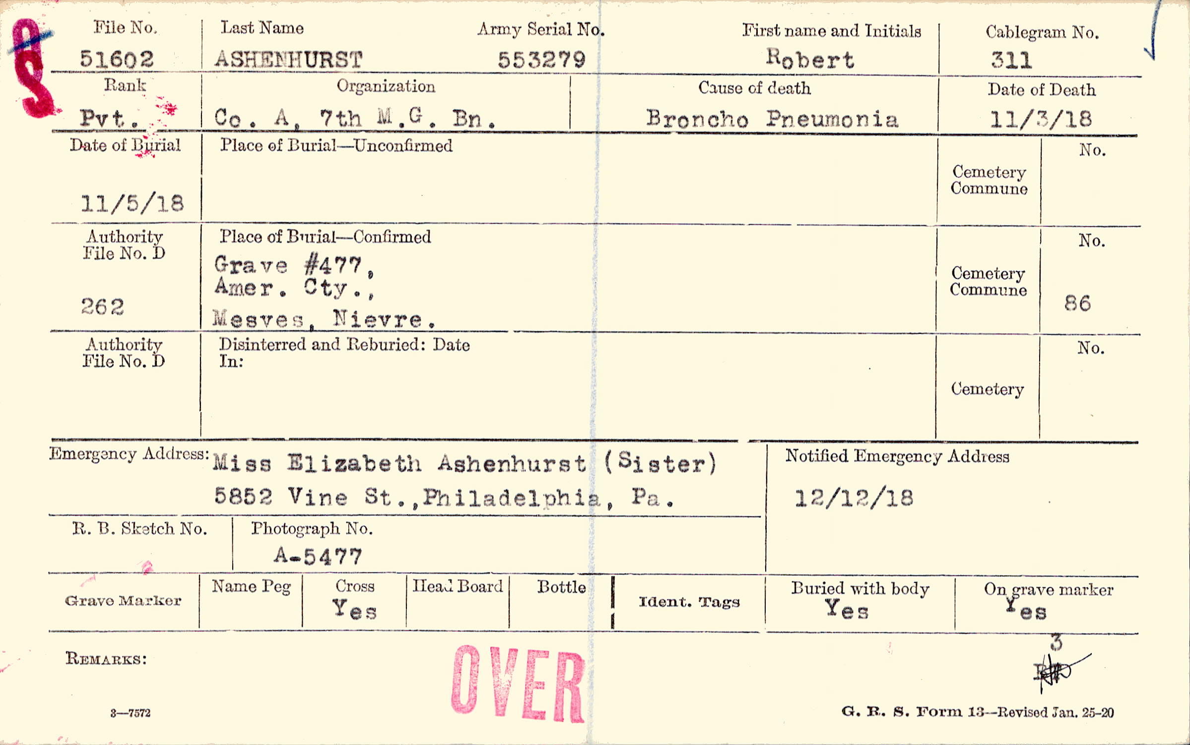 Grave #477, Amer. Cty., Mesves, Nievre.