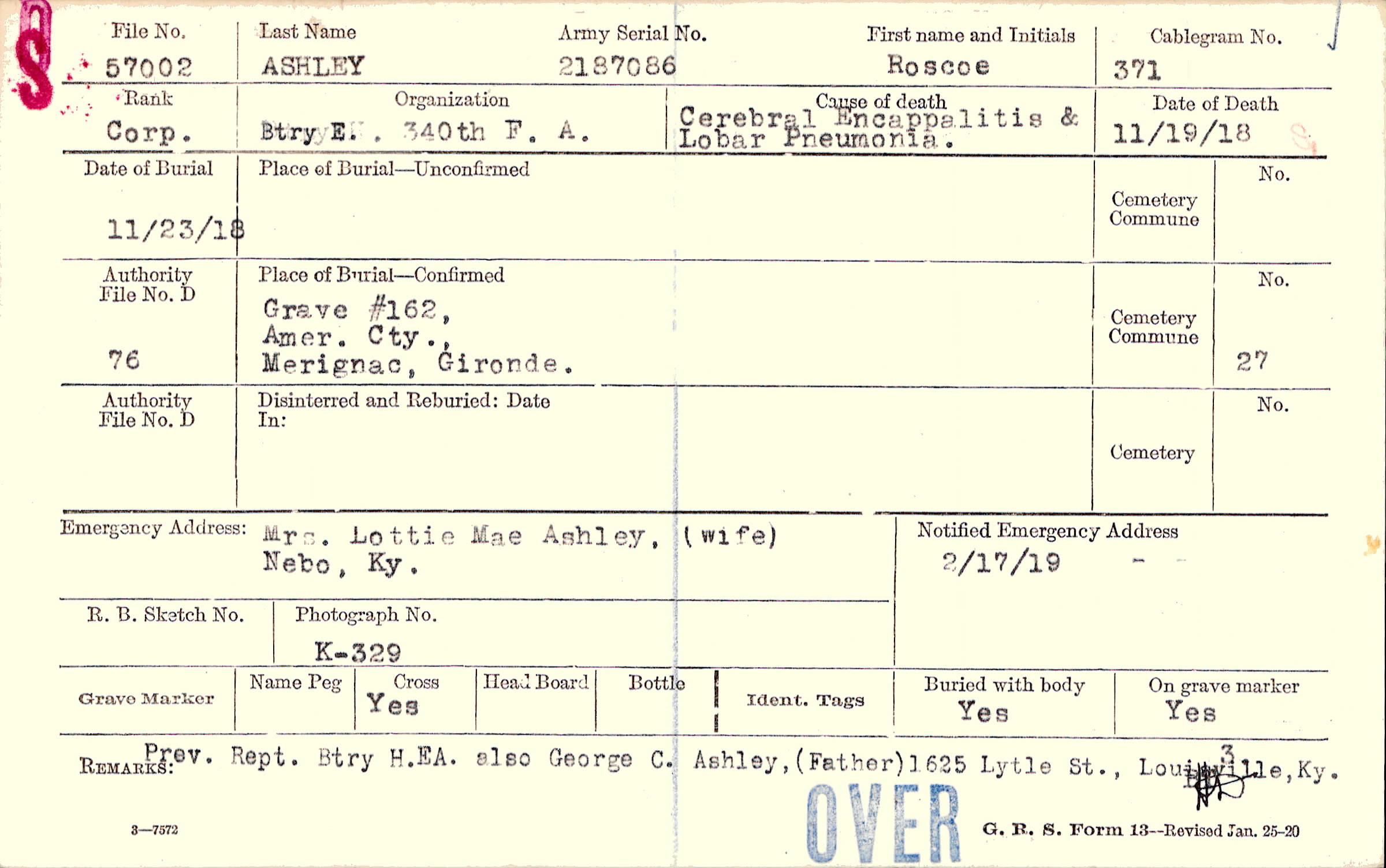 Mrs. Lottie Mae Ashley, (wife), Nebo, Ky.