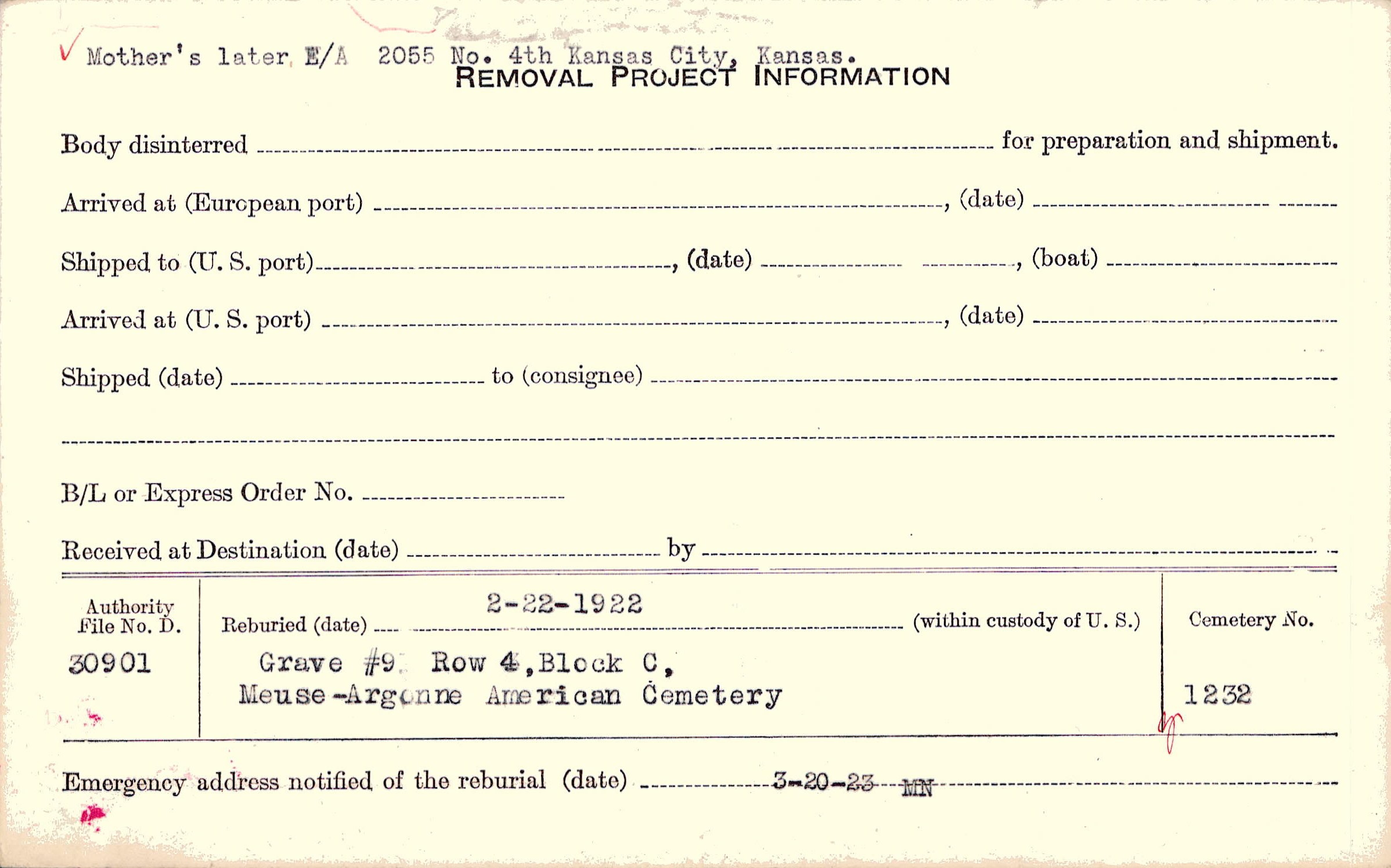 Mother's later E/A 2055 No. 4th Kansas City, Kansas. |