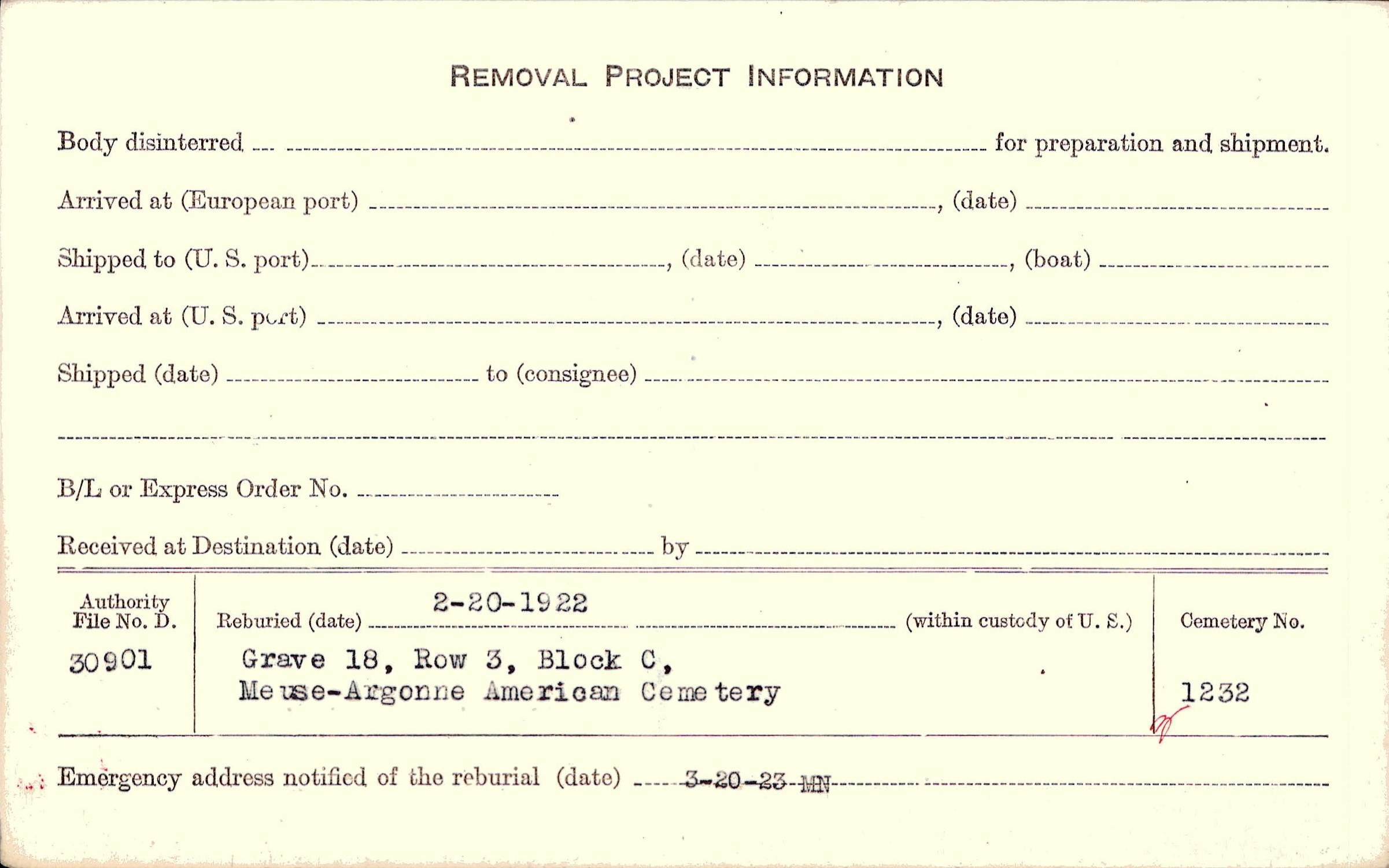 Grave 26, Plot B, Row 2, Amer. B/A Cty., Very, Meuse