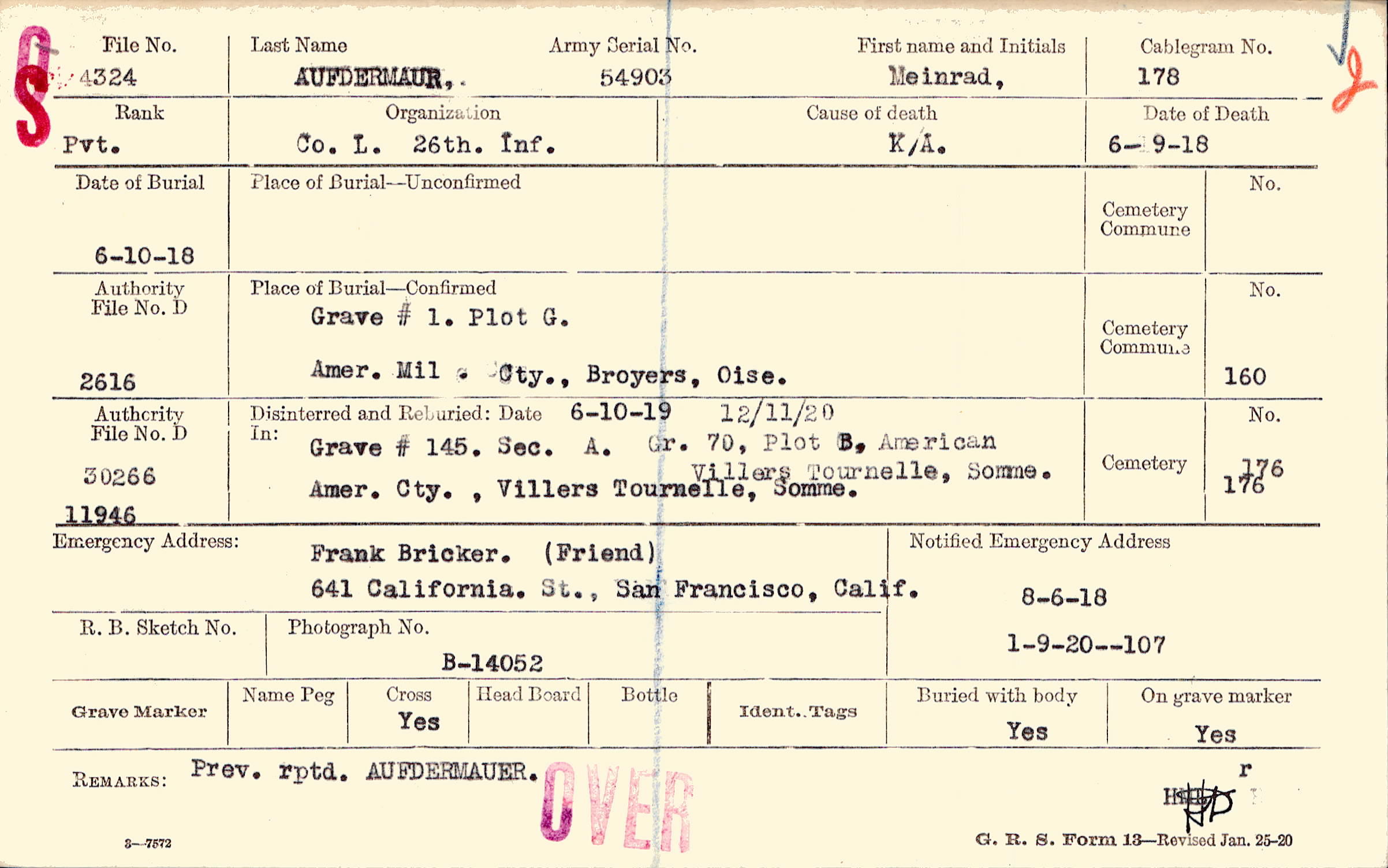 Army Serial No. |