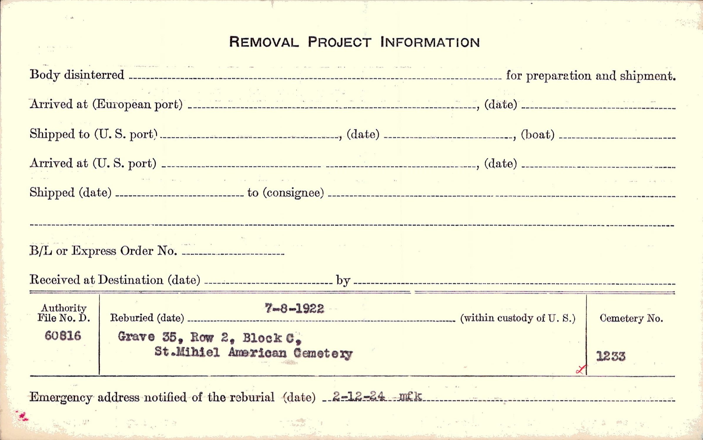 | Permanent Burial in Foreign Cemetery |