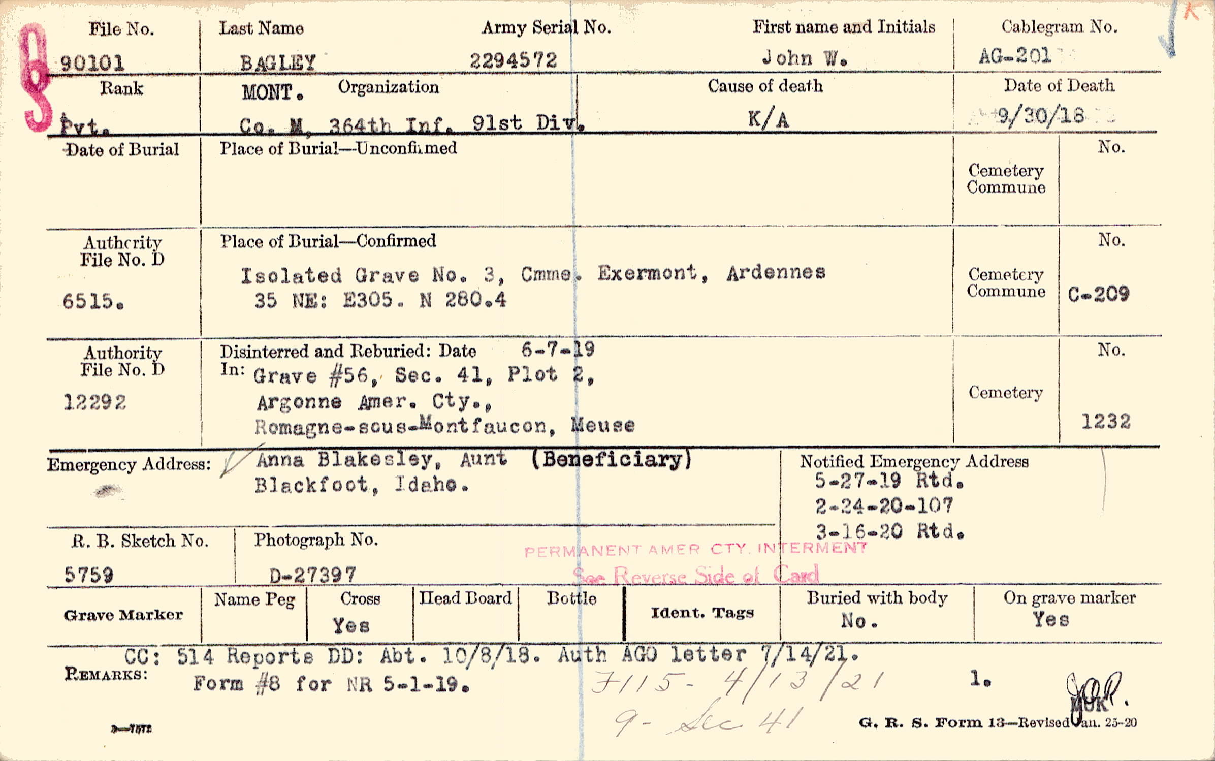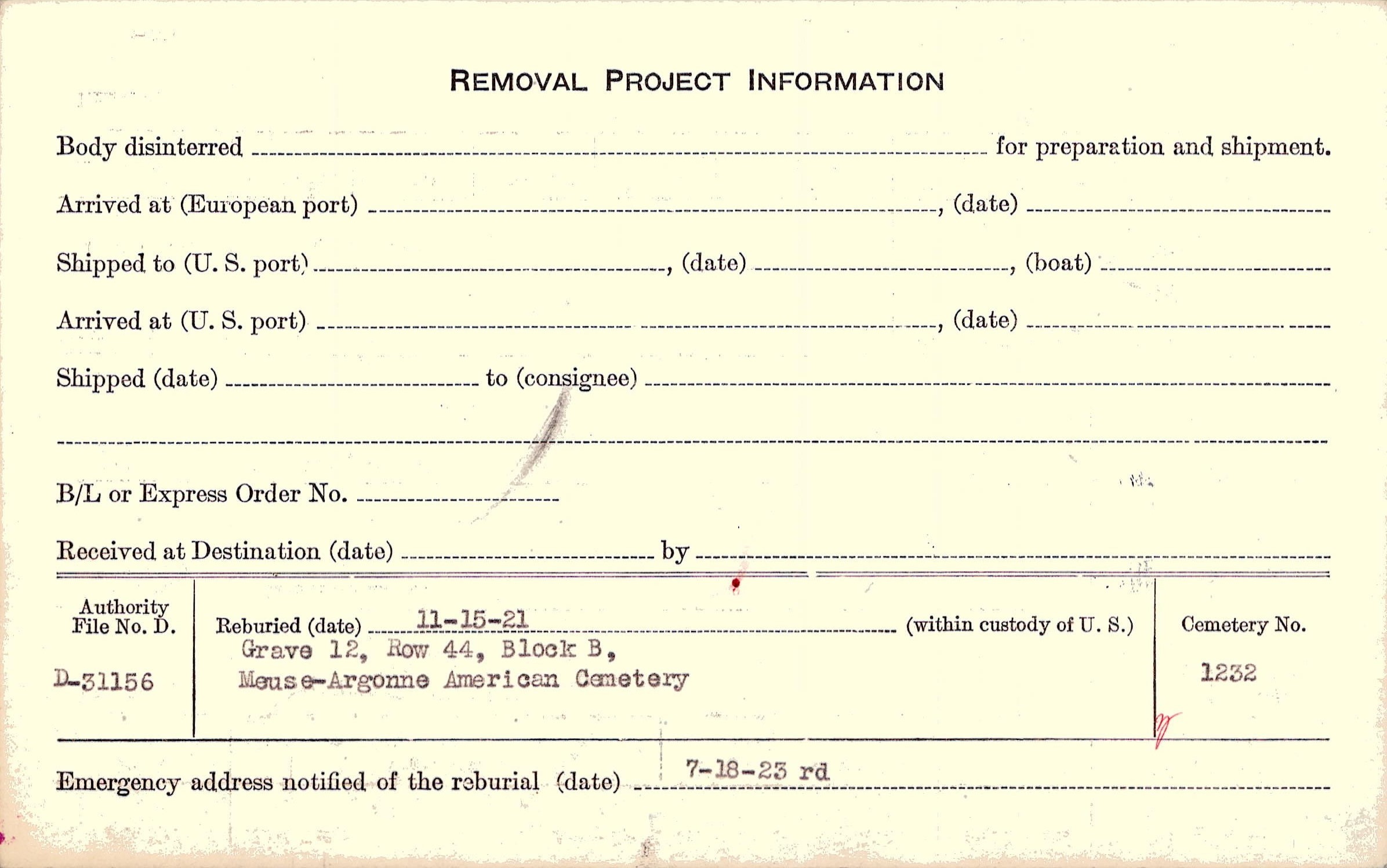 Grave 56, Section 41, Plot 2, Argonne American Cemetery, Romagne-sous-Montfaucon, Meuse