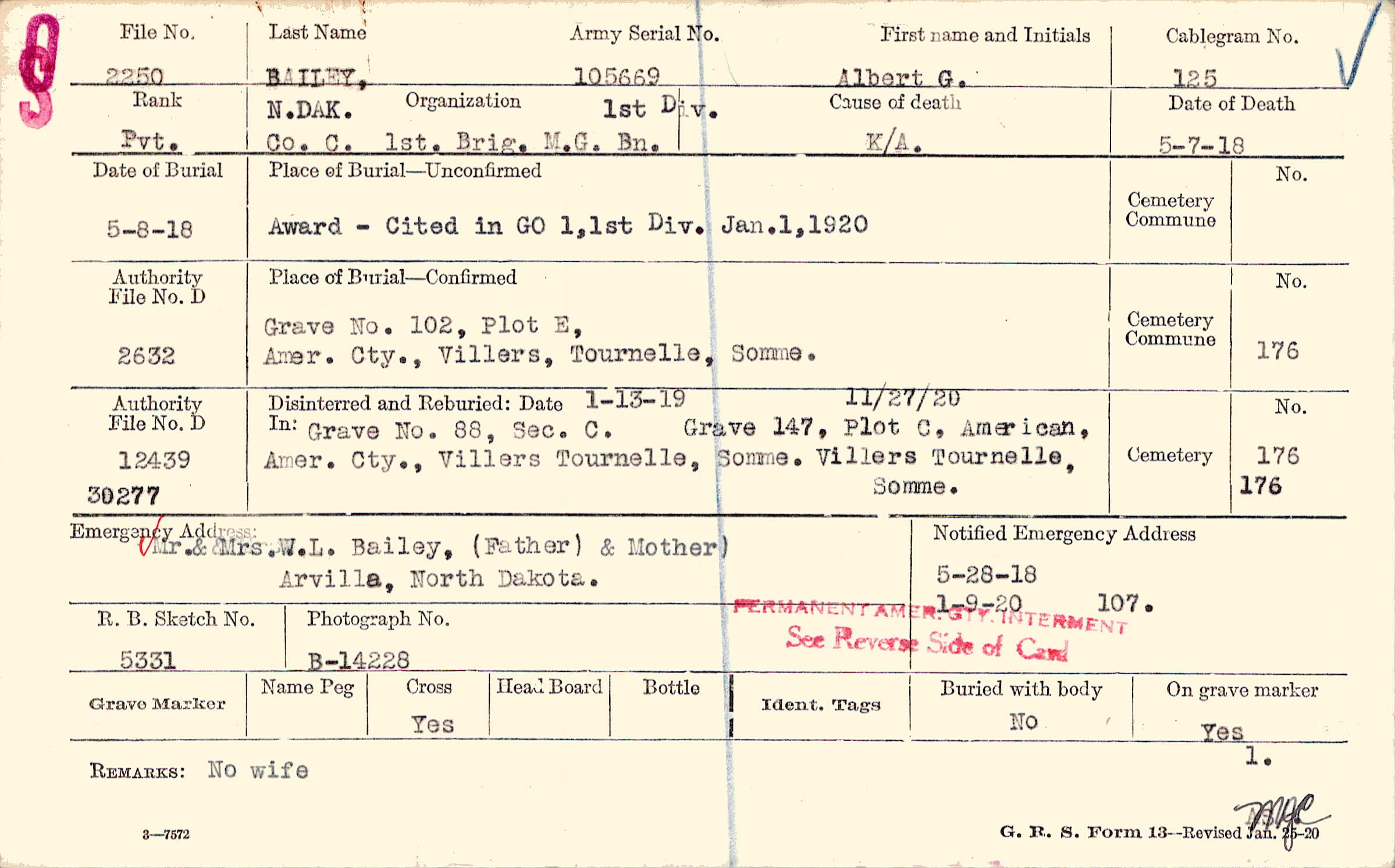 5/28/1918, Form 107: 1/9/1920