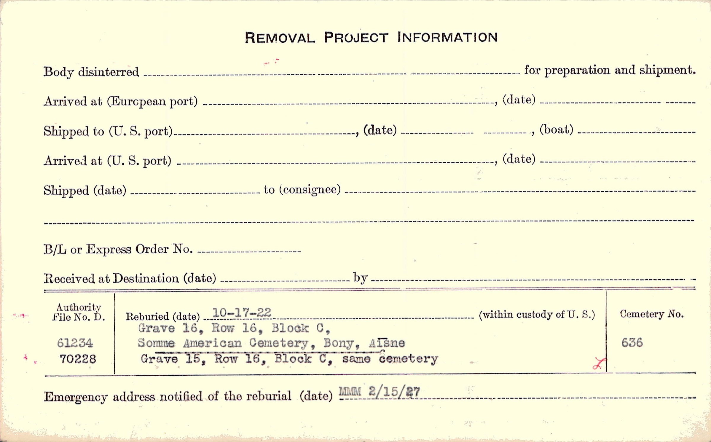 Prior Burial in Foreign Cemetery |