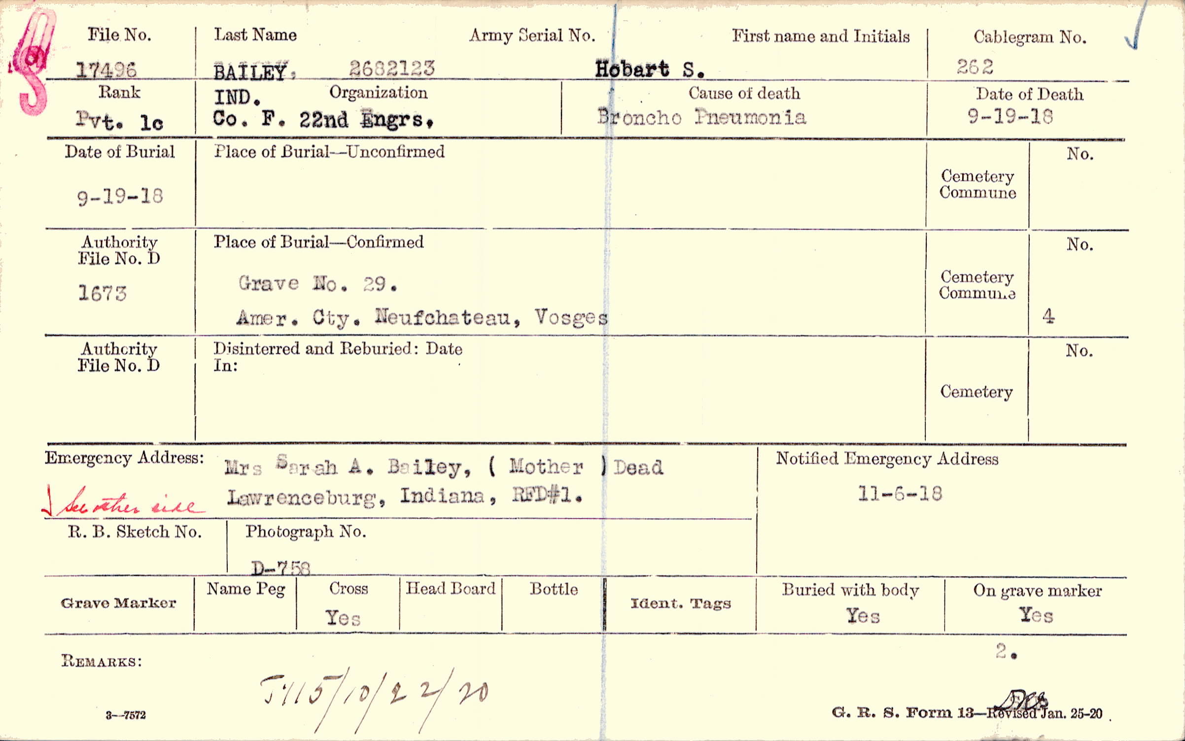 Grave 29., Amer. Cty., Neufchateau, Vosges,