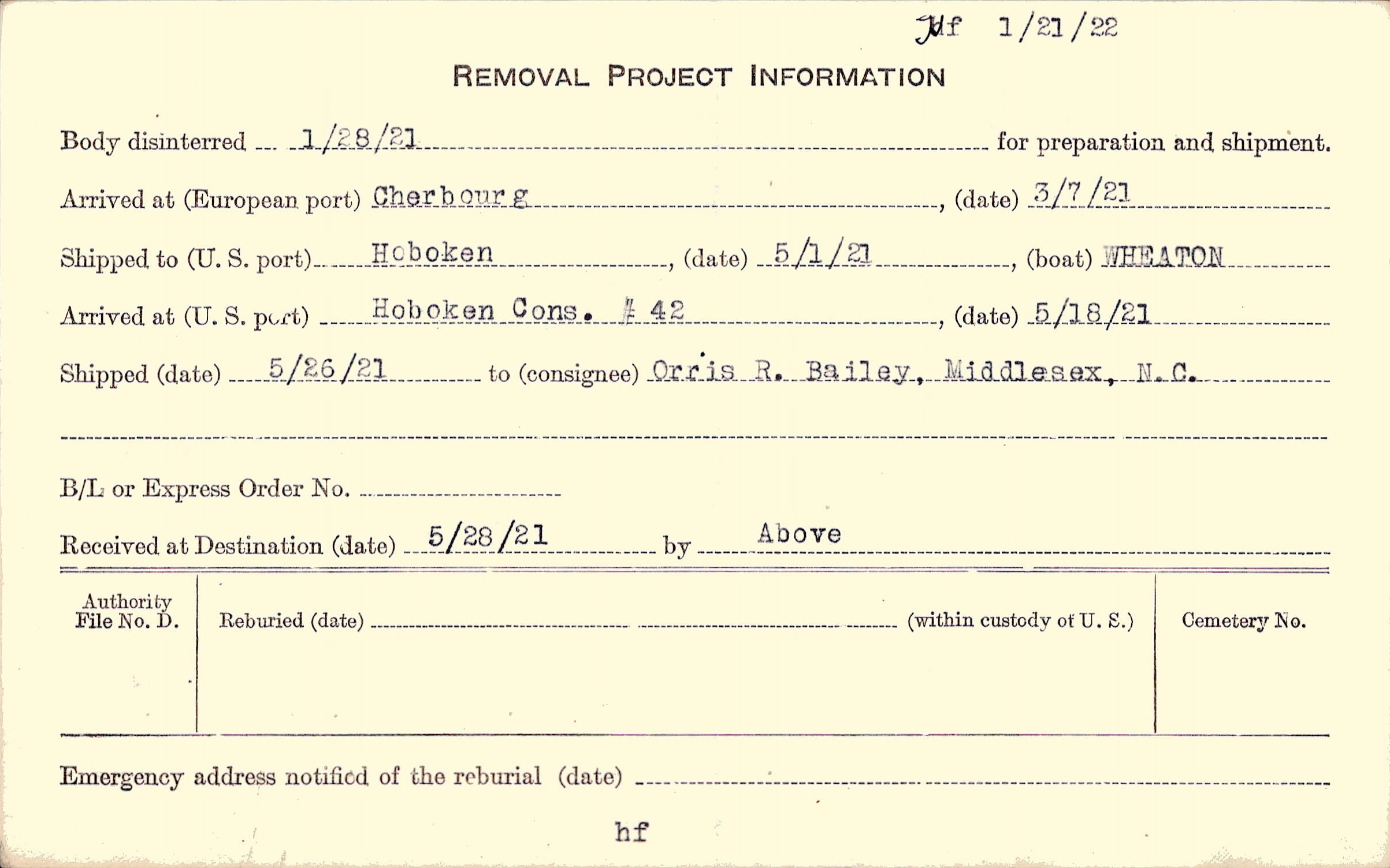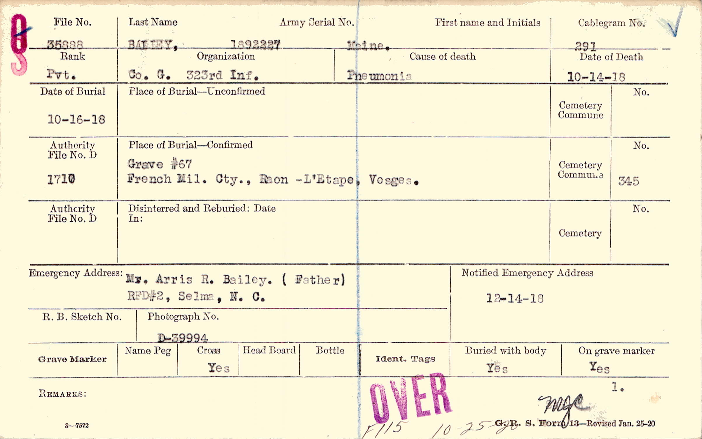 Mr. Arris R. Bailey. (Father), RFD#2, Selma, N. C.