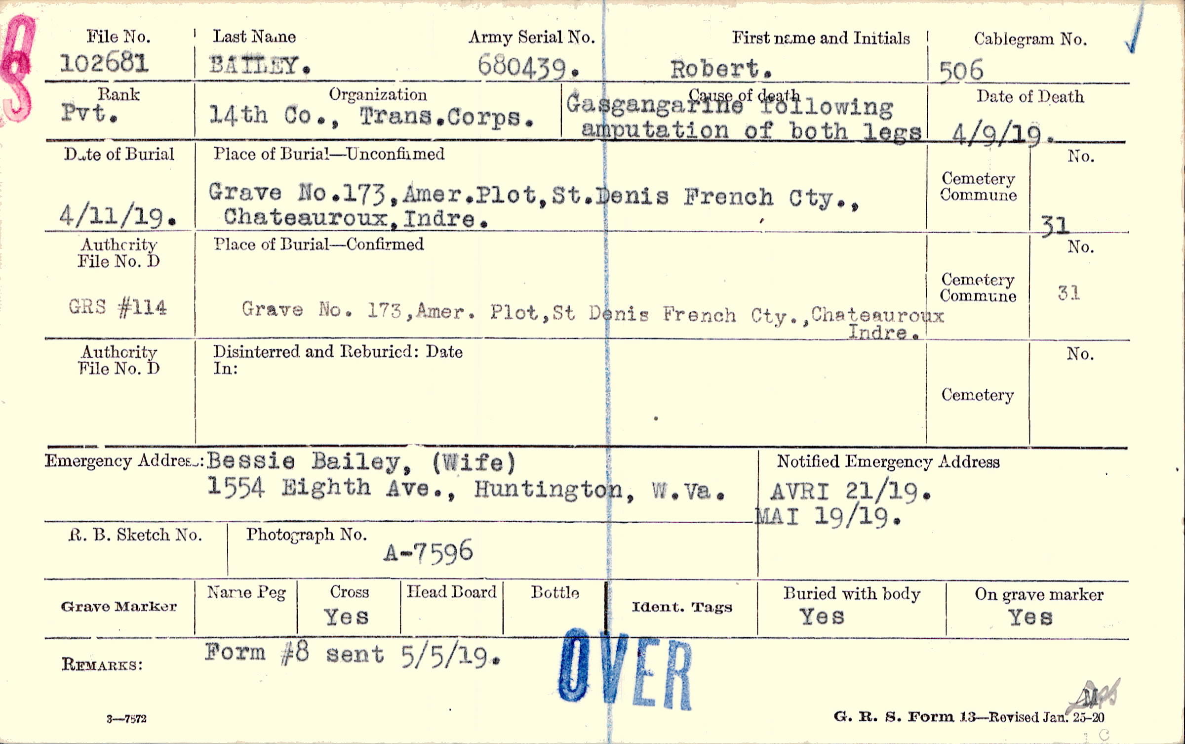 Grave 173, Amer. Plot, St. Denis French Cty., Chateauroux, Indre.