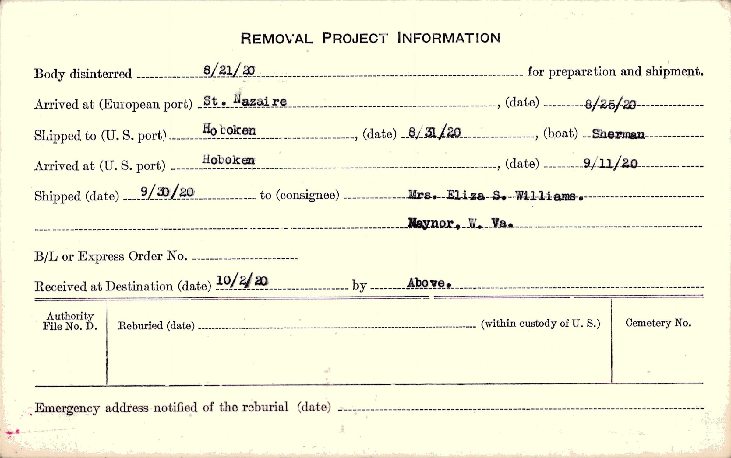 to Mrs. Eliza S. Williams. Maynor, W. Va.