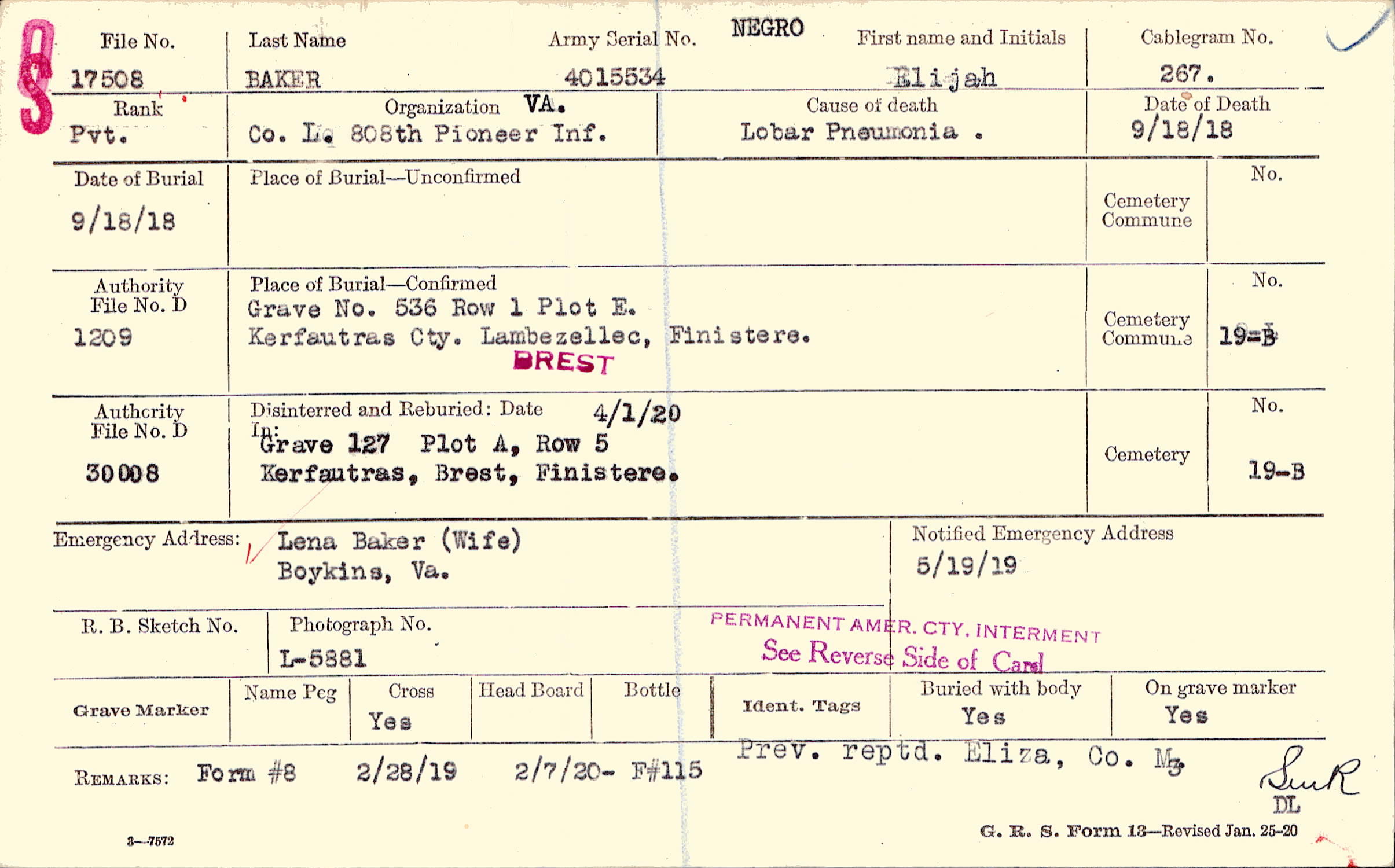 | Reburied (date): |