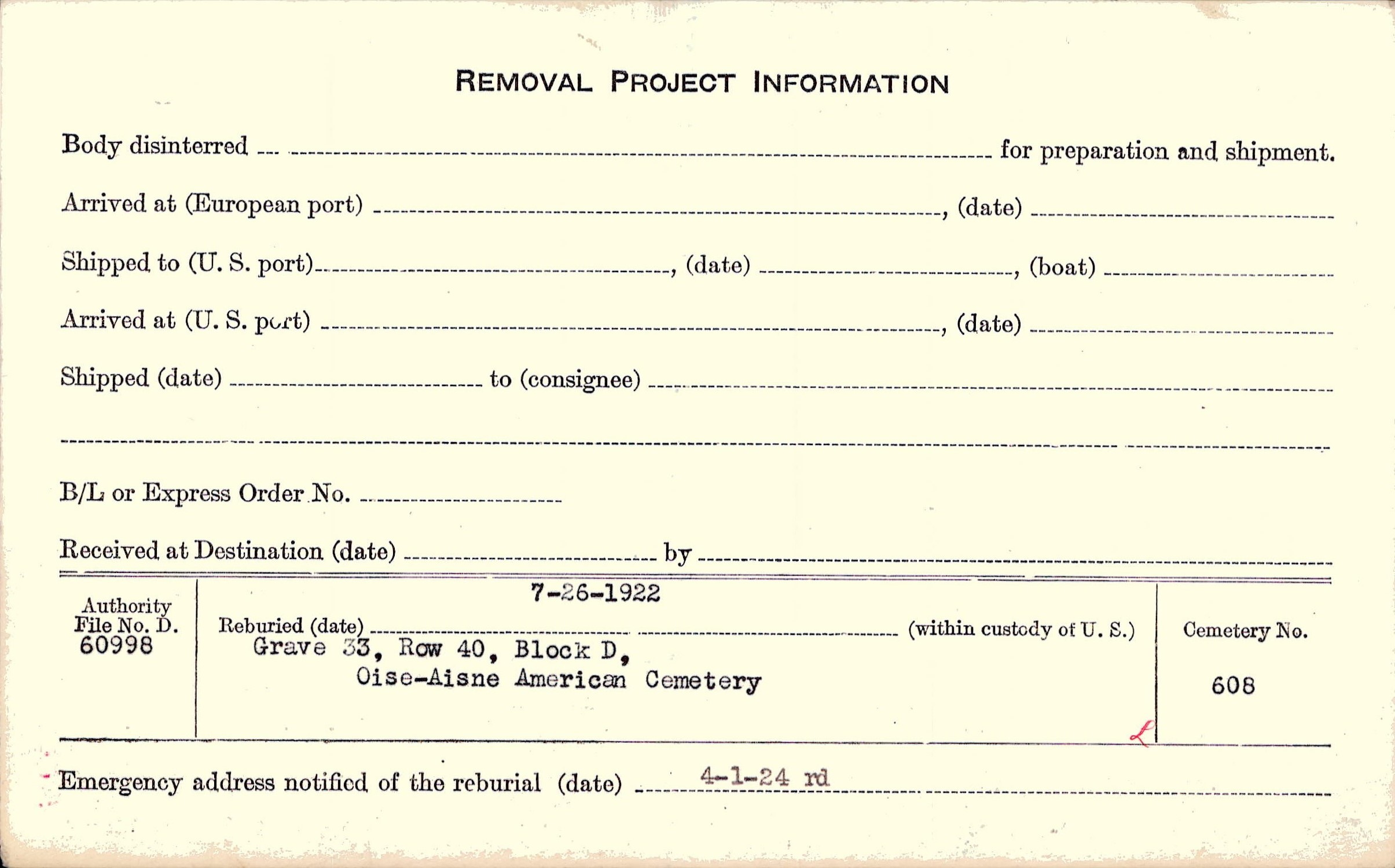| Permanent Burial in Foreign Cemetery |
