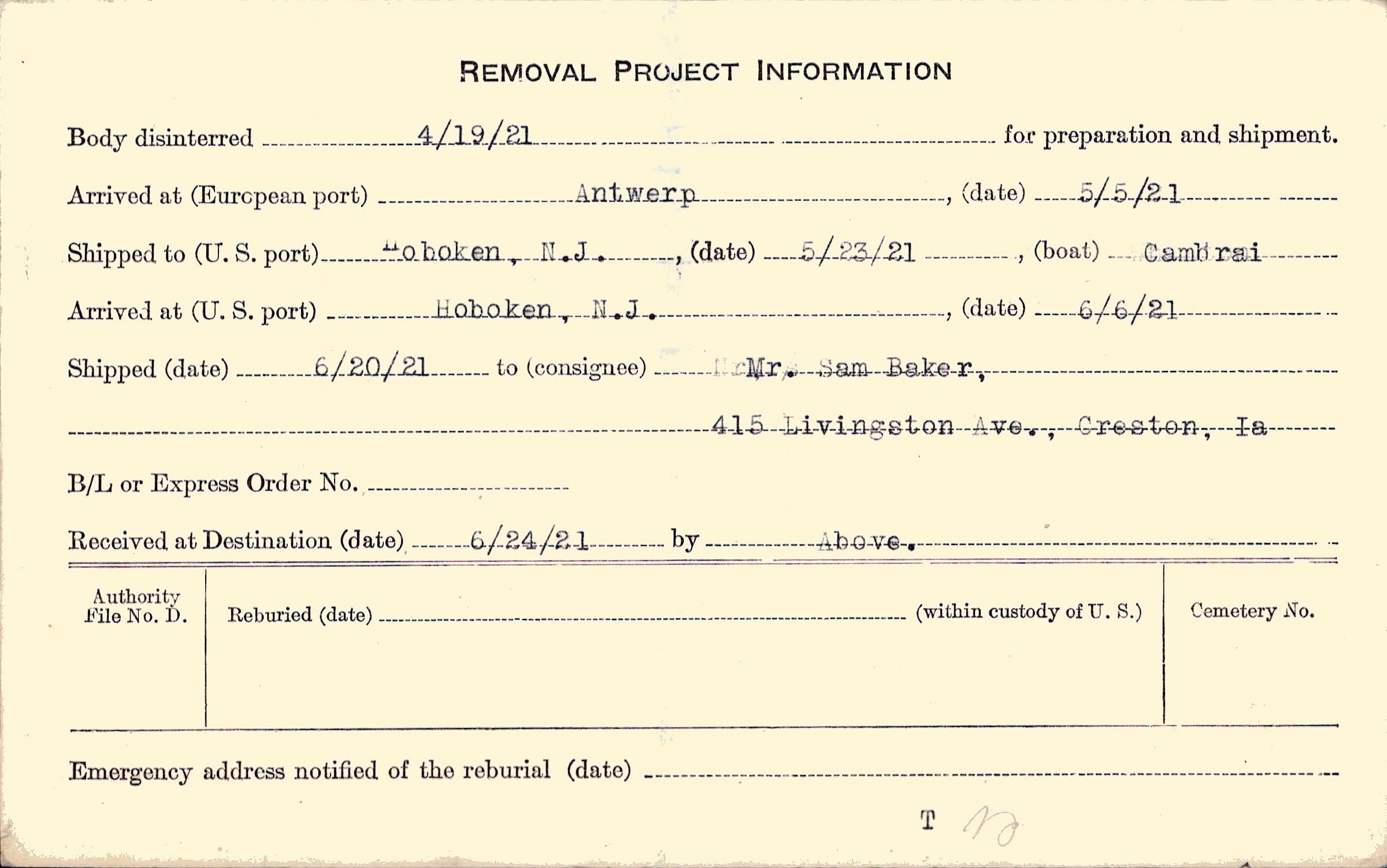Sam Baker (Father), 415 Livingston Ave., Creston, Iowa