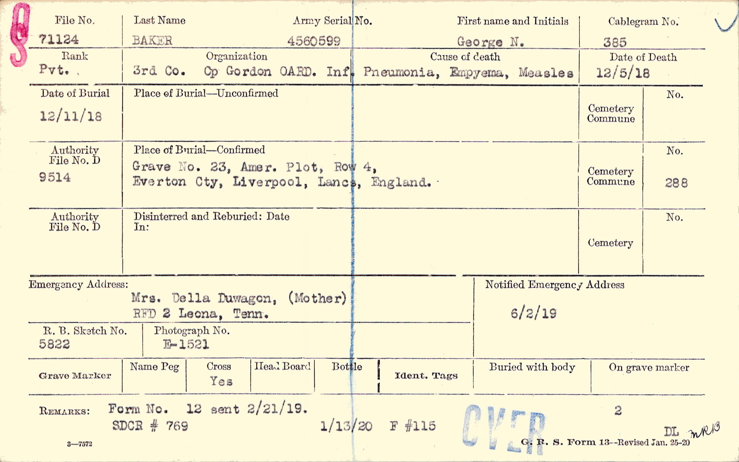 Grave 23, Amer. Plot, Row 4, Everton Cty, Liverpool, Lancs, England.