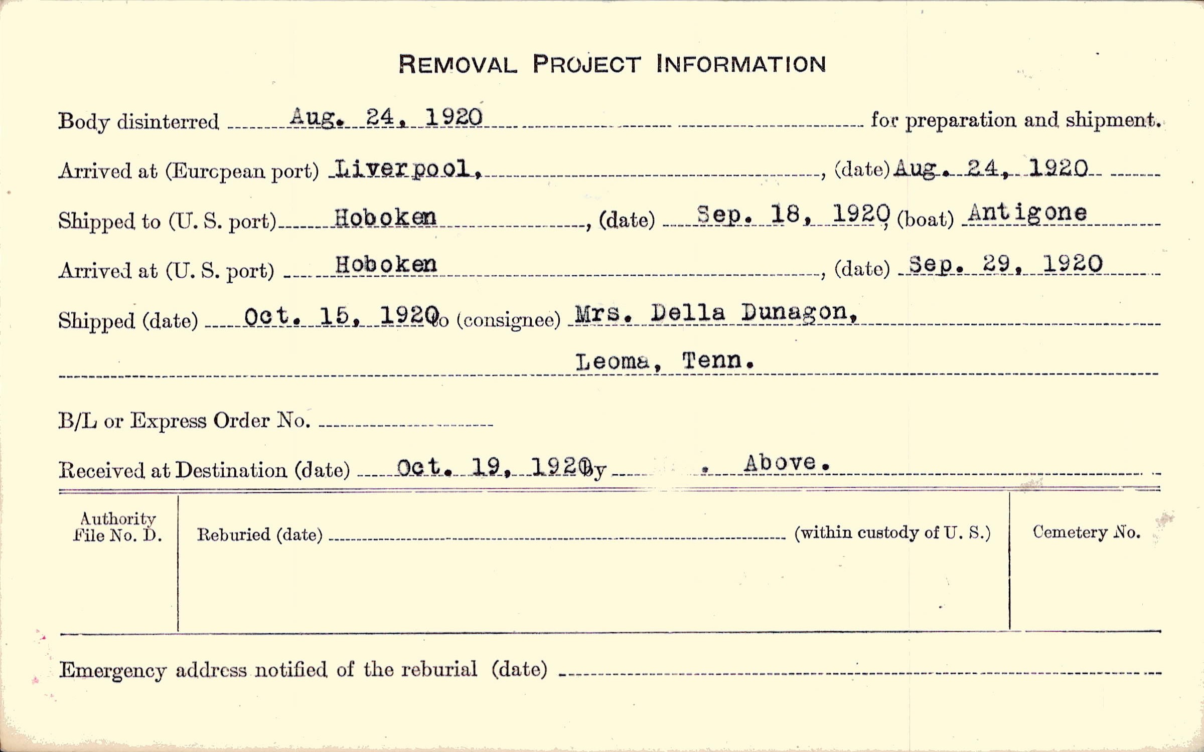 Mrs. Della Duwagon, (Mother), RFD 2 Leona, Tenn.