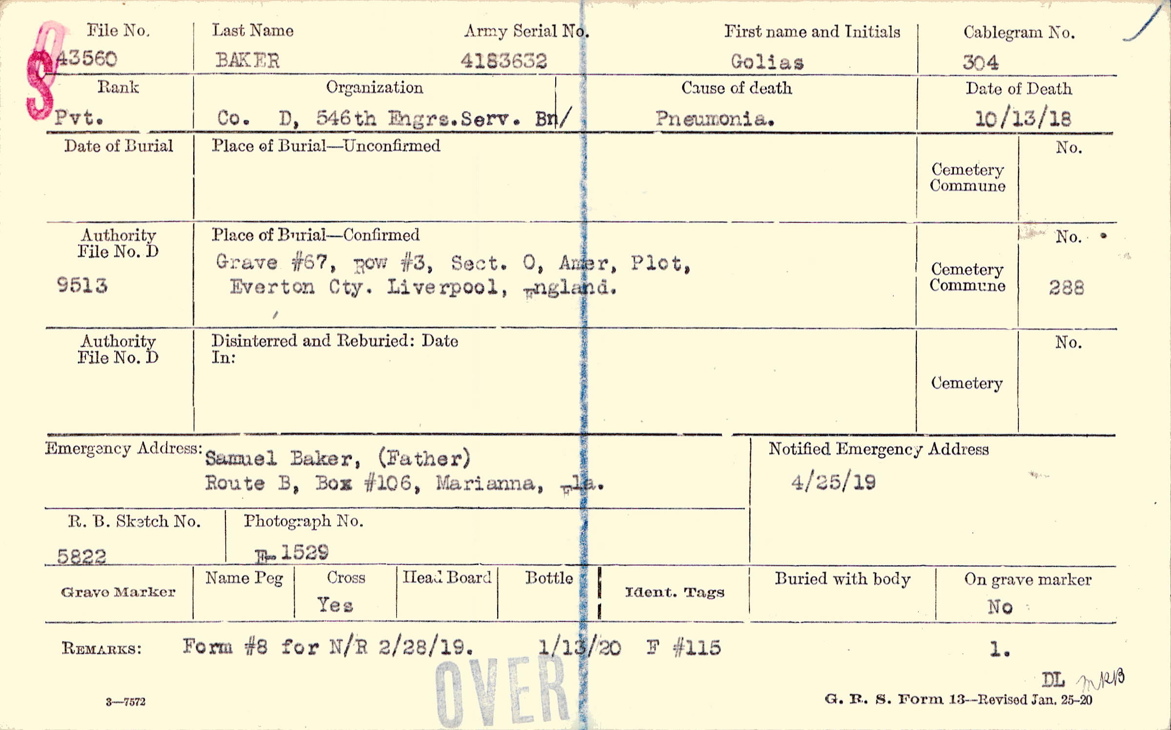 Grave #67, Row #3, Sect. O, Amer. Plot, Everton Cty., Liverpool, England