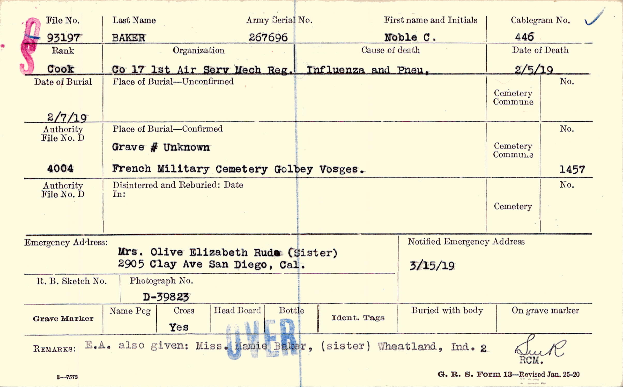 Mrs. Olive Elizabeth Rude (Sister), 2905 Clay Ave San Diego, Cal.