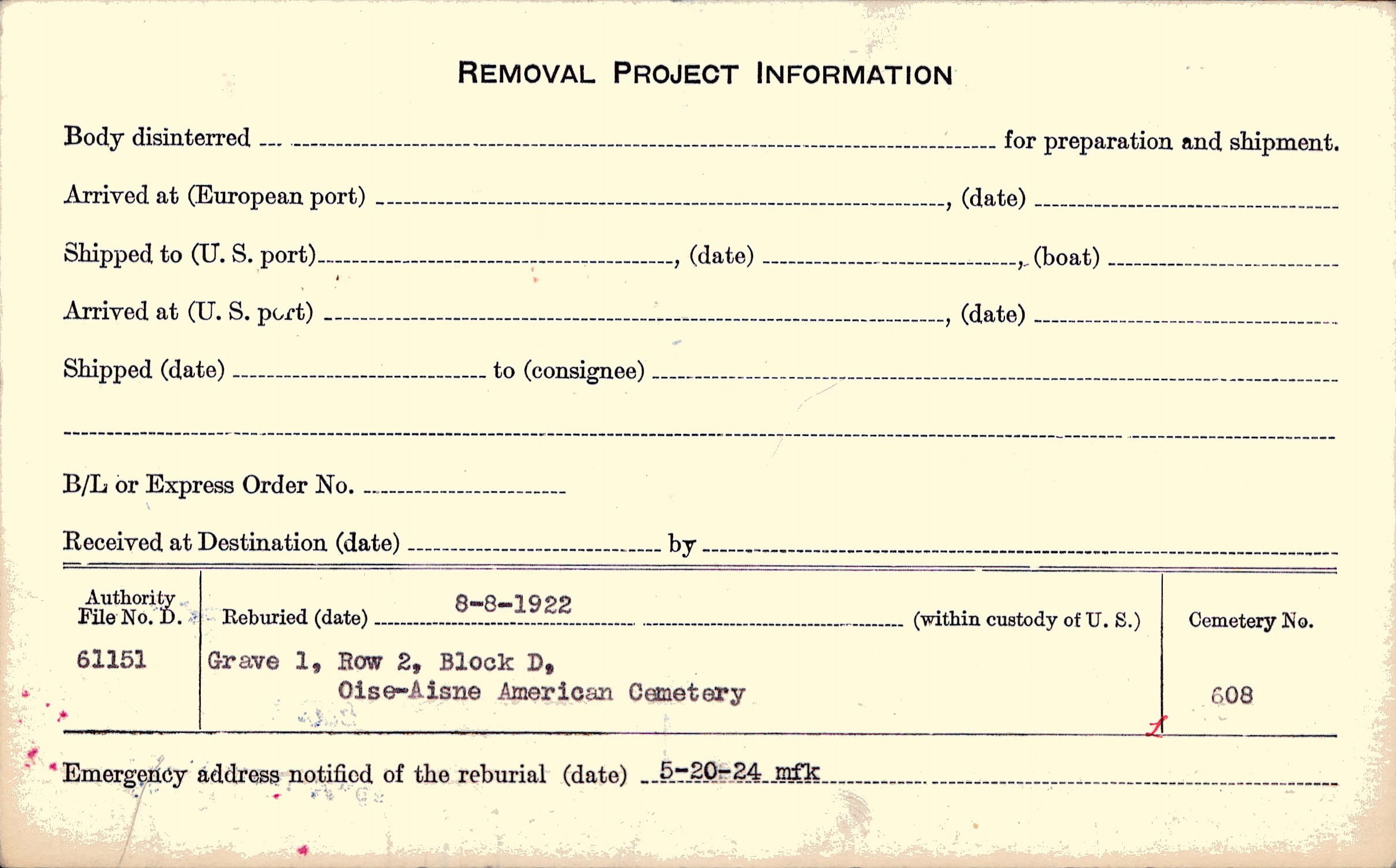 Grave # 124, Amer B/A Cty., Juvigny, Aisne.
