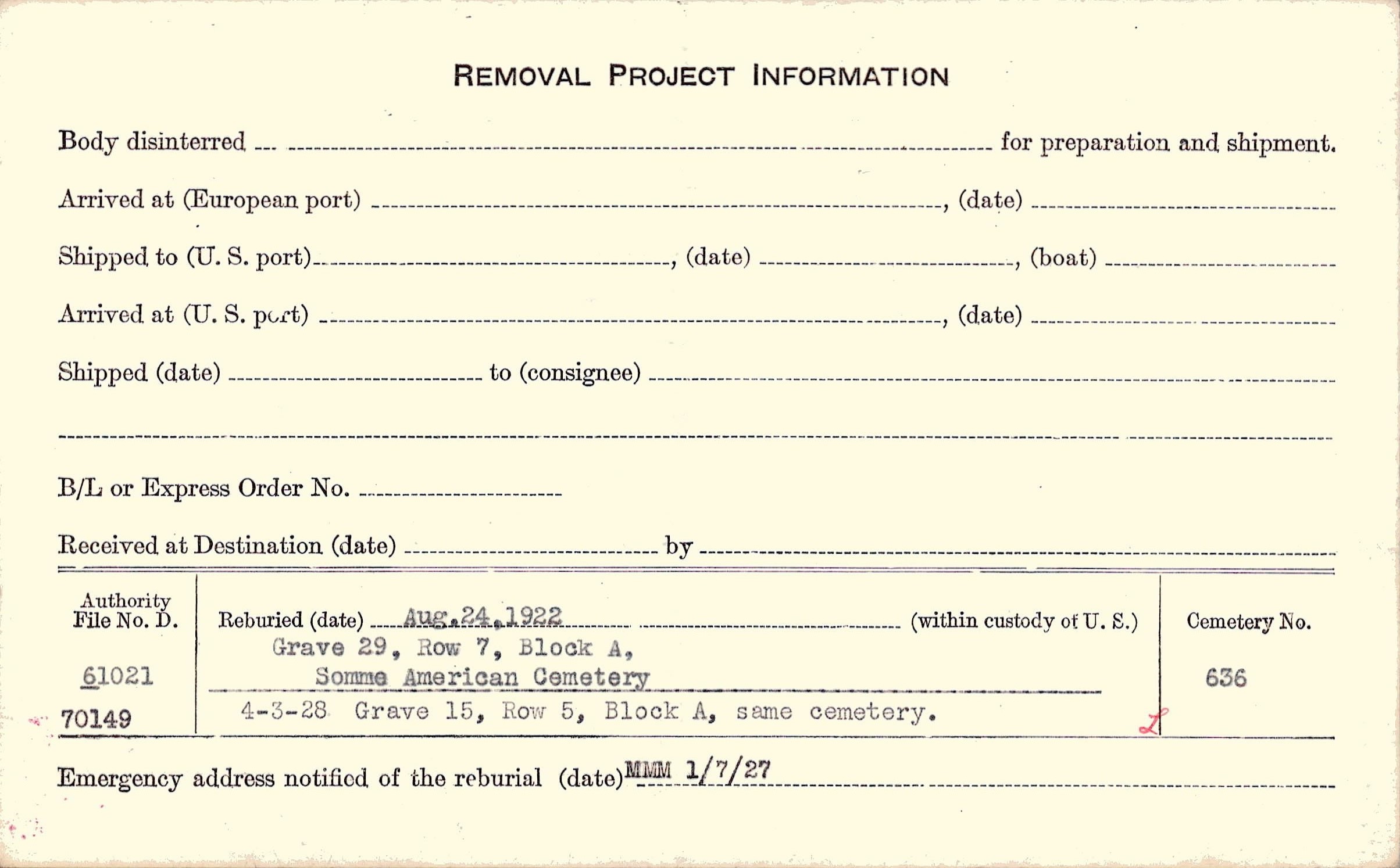 Prior Burial in Foreign Cemetery |