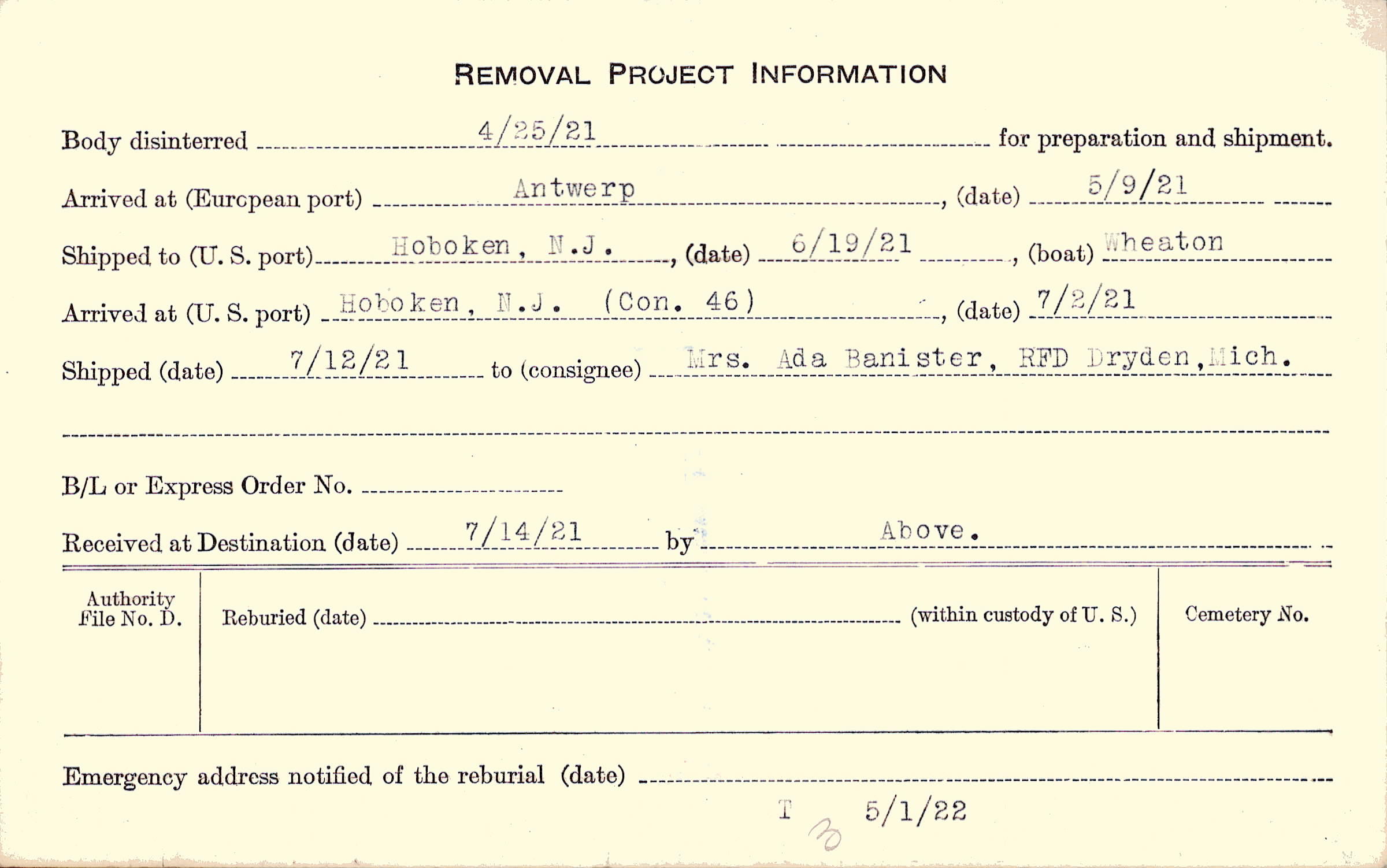 to Mrs. Ada Banister, RFD Dryden, Mich.