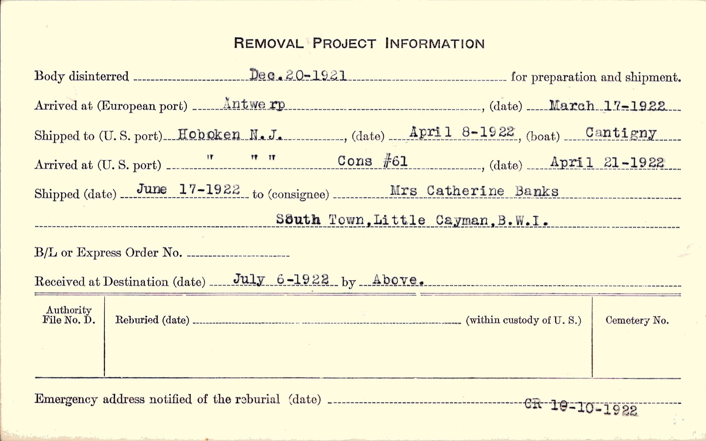 to Mrs Catherine Banks, South Town, Little Cayman, B.W.I.