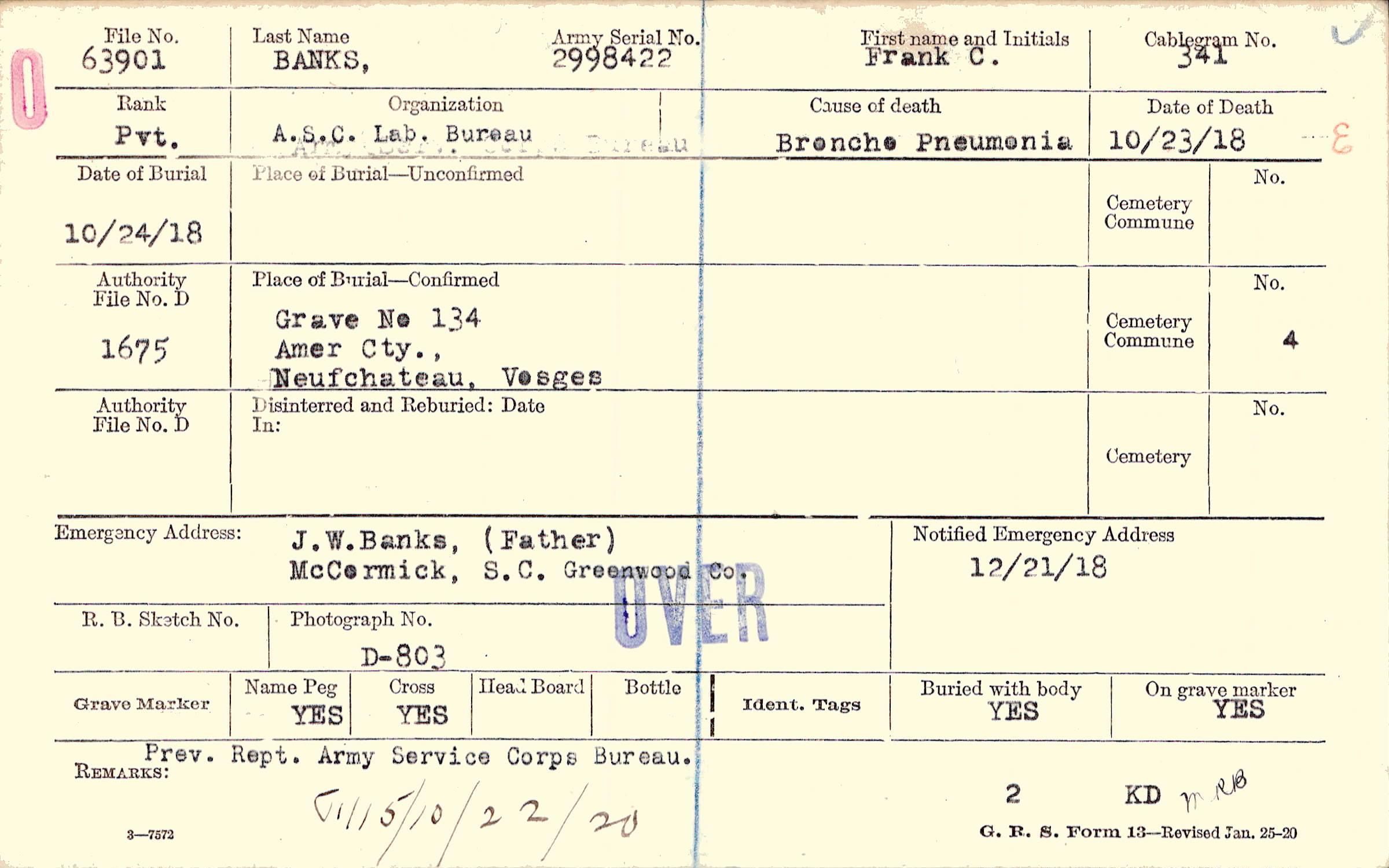 Grave No 134, Amer Cty., Neufchateau, Vosges