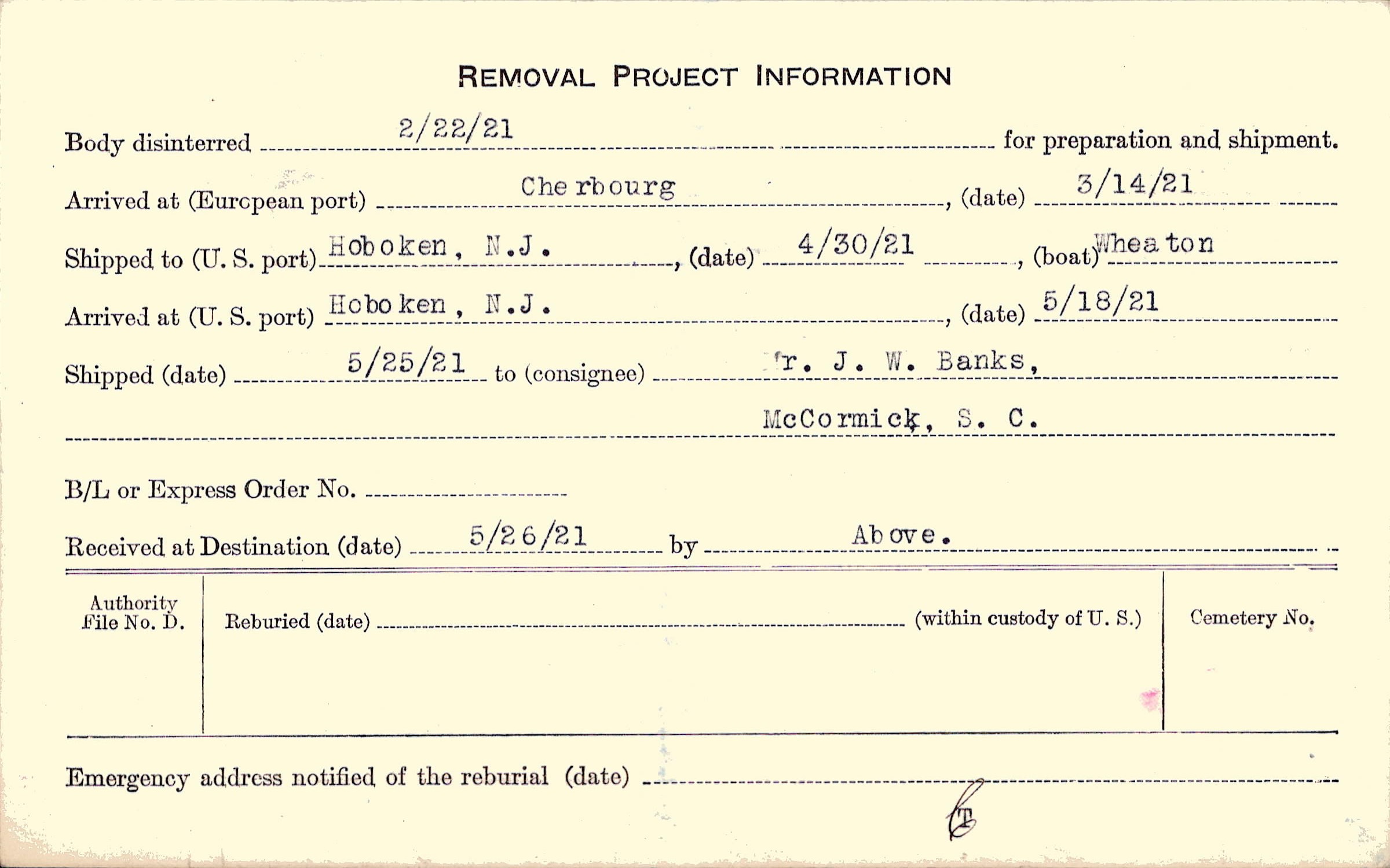 J.W.Banks, (Father), McCormick, S.C. Greenwood Co.