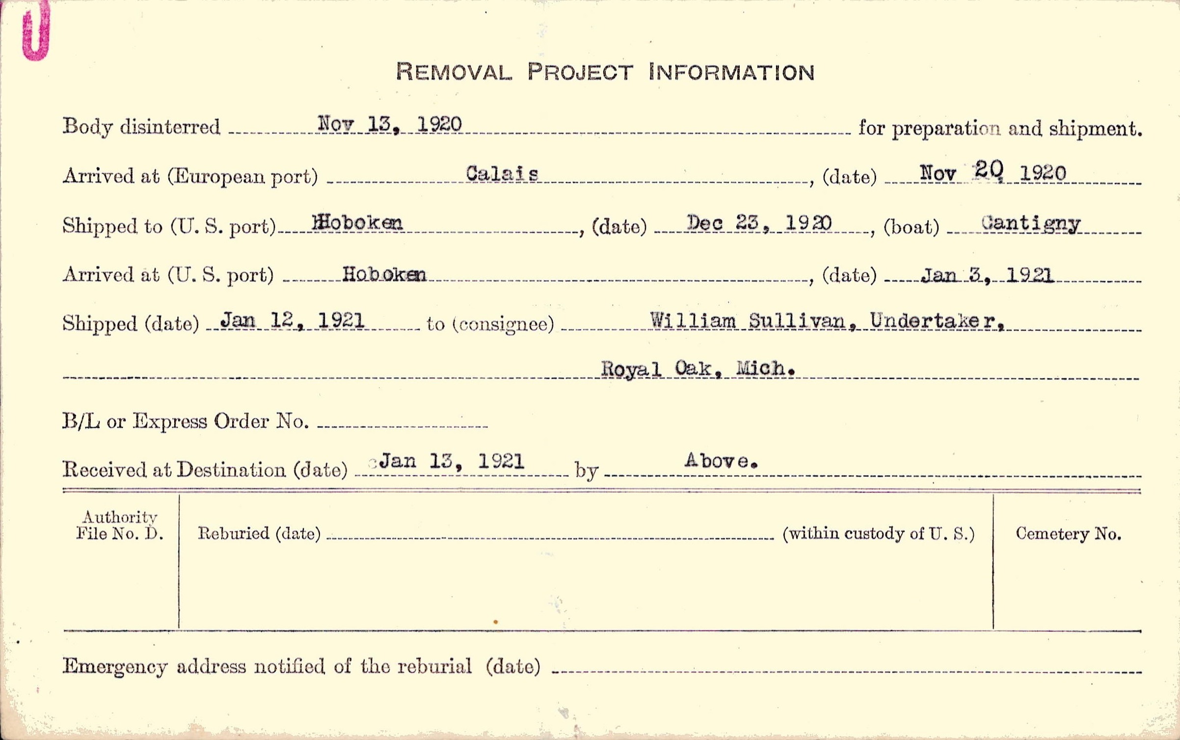 to William Sullivan, Undertaker, Royal Oak, Mich.