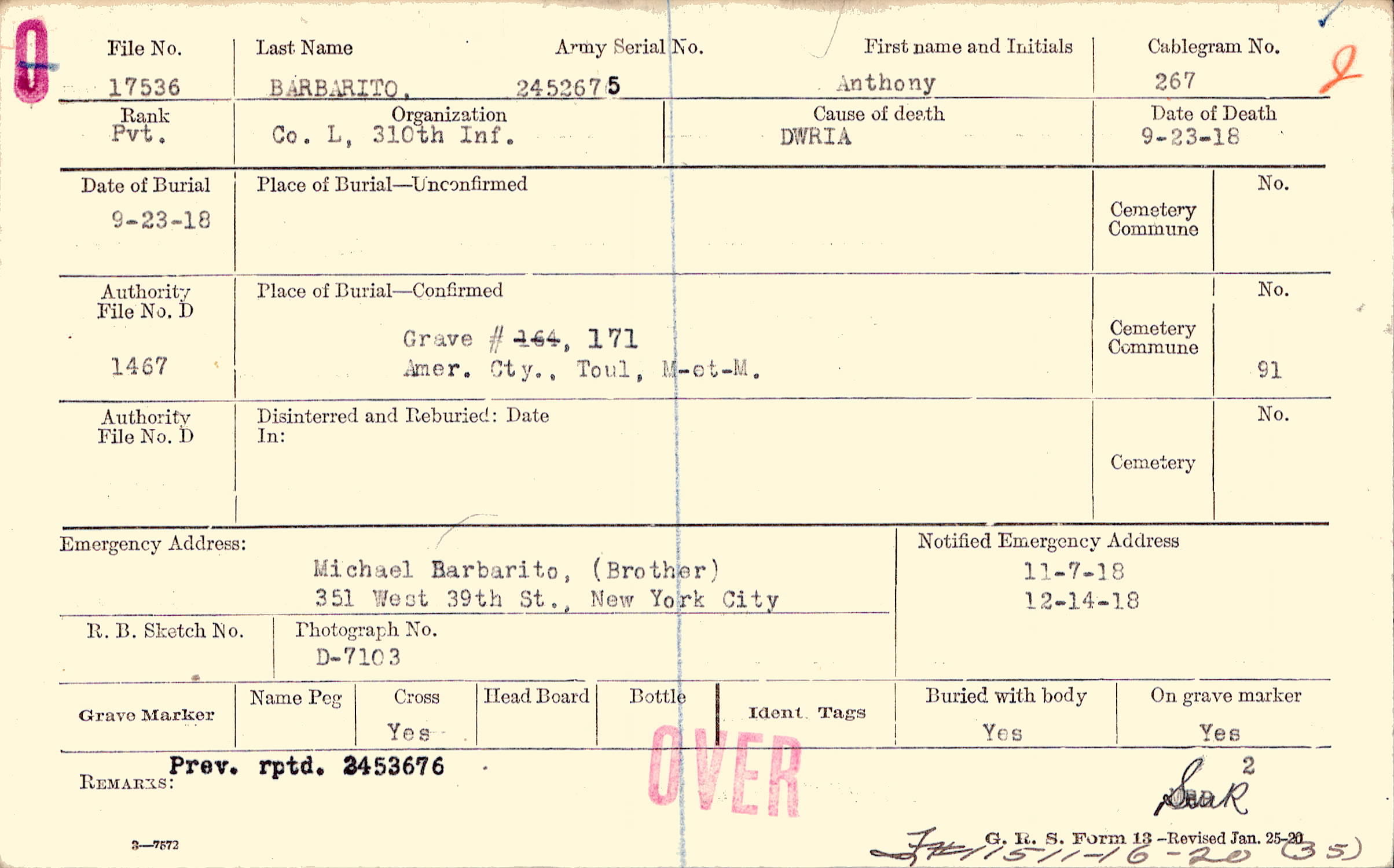 Grave #171, Amer. Cty., Toul, M-et-M