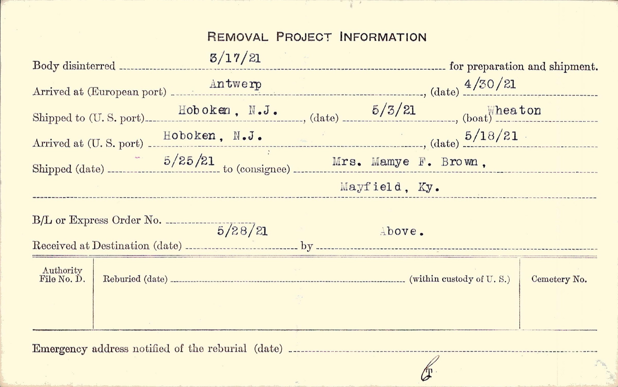 to Mrs. Mamye F. Brown, Mayfield, Ky.