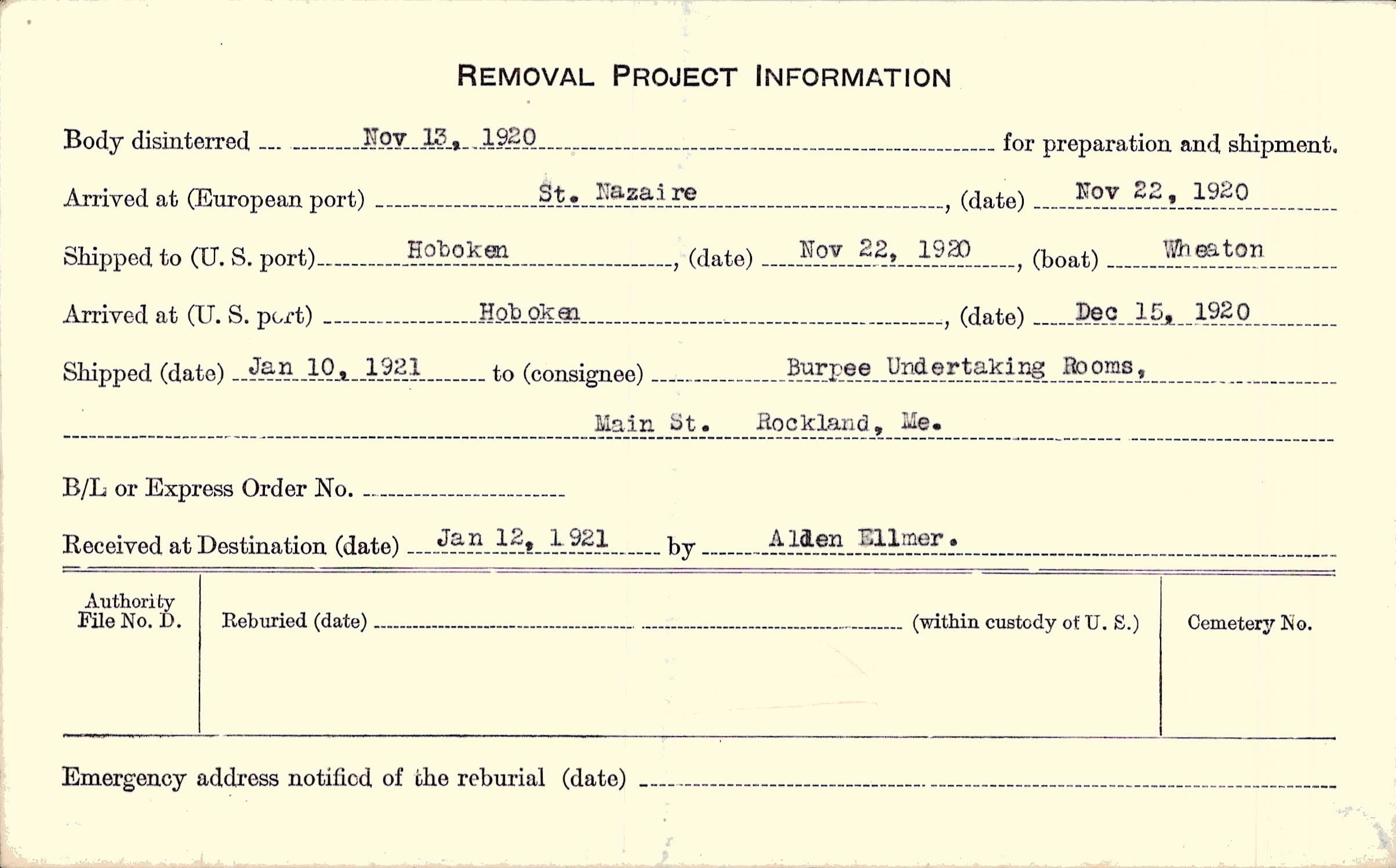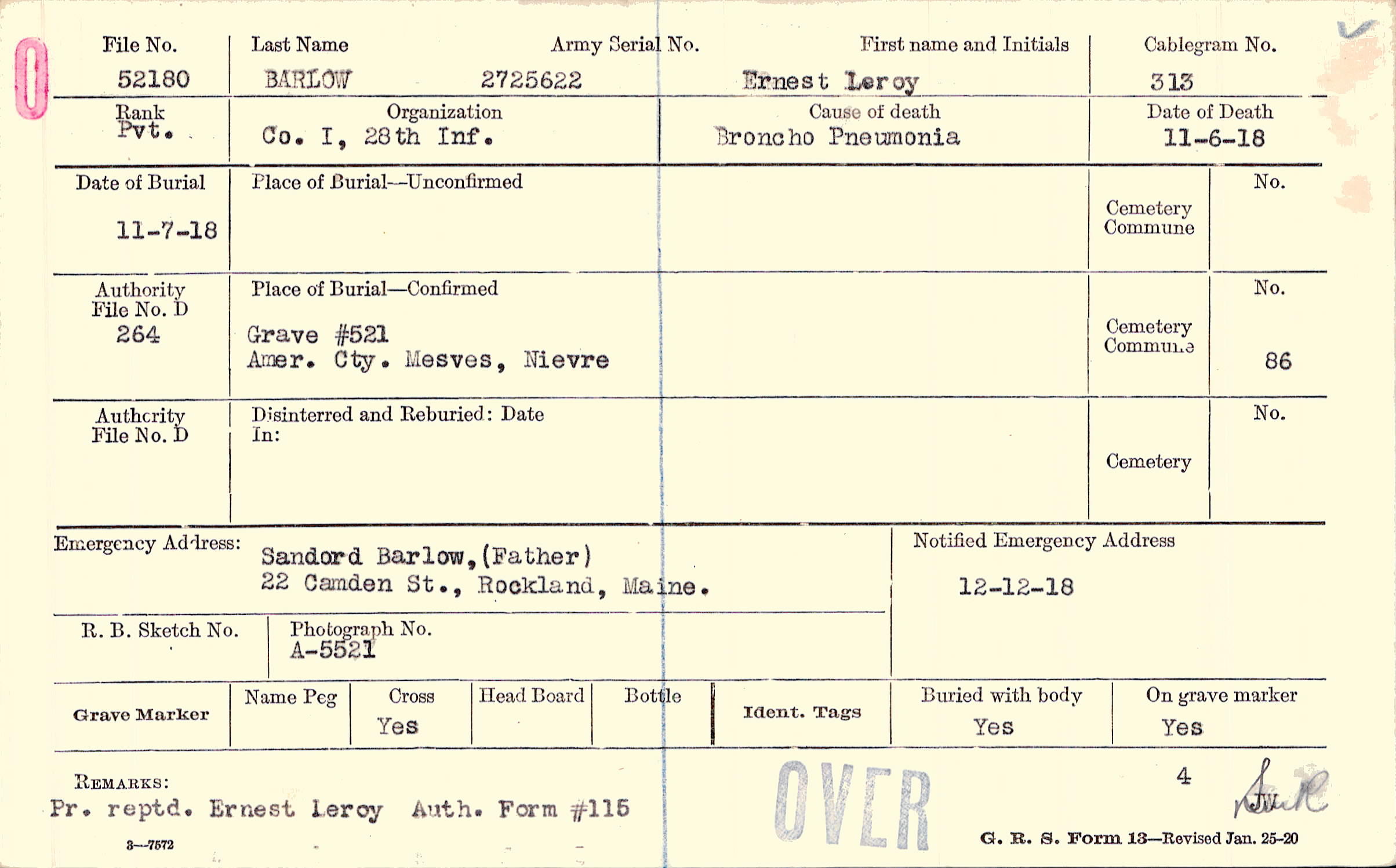 Sandord Barlow, (Father), 22 Camden St., Rockland, Maine.