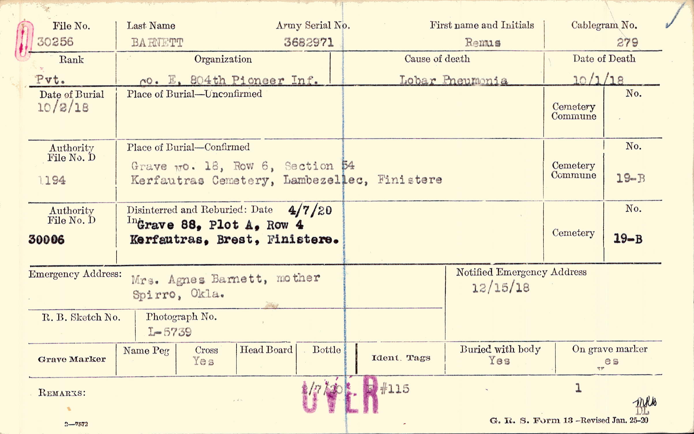 Grave 18, Row 6, Section 54, Kerfautras Cemetery, Lambezellec, Finistere.
