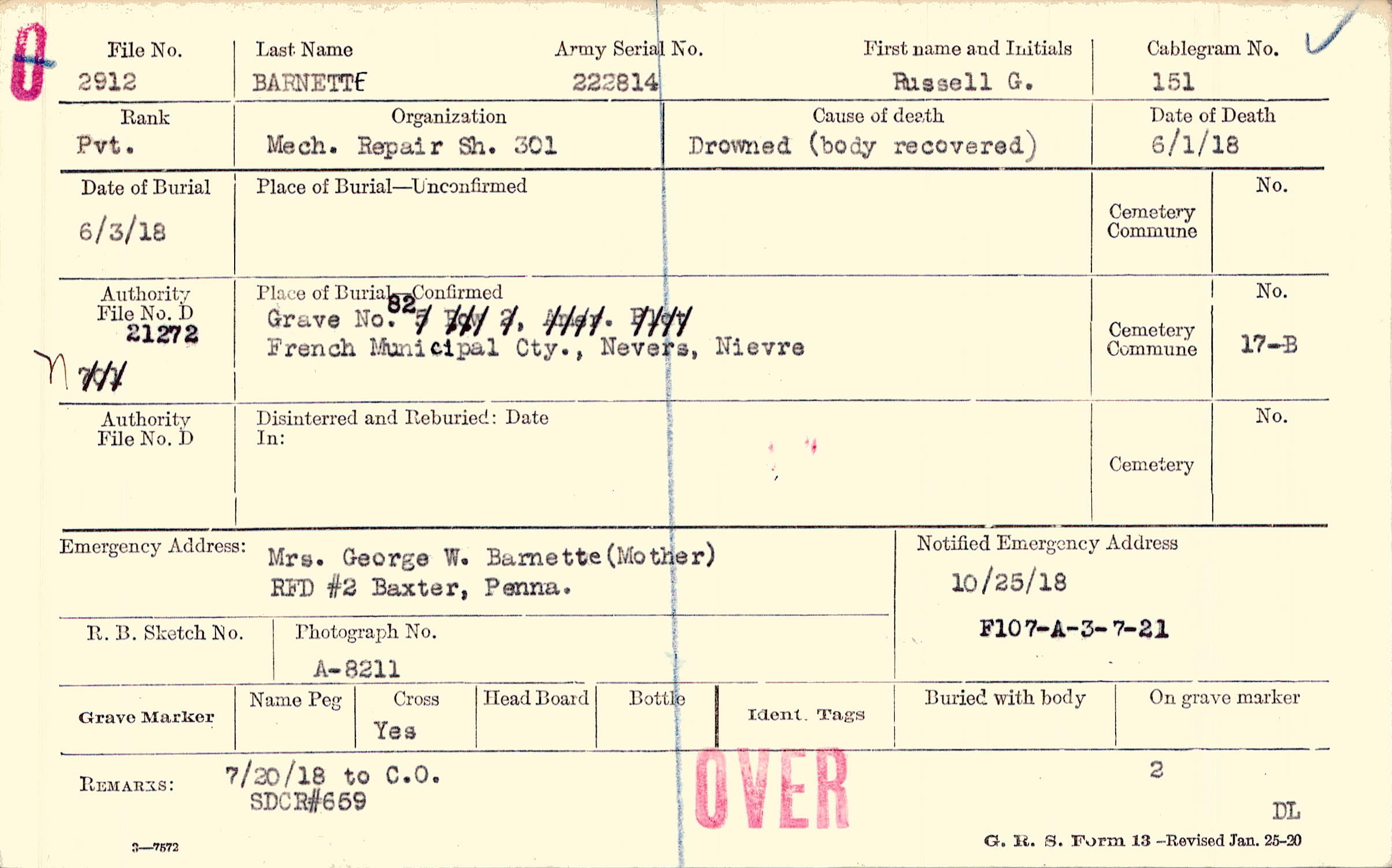 Mrs. George W. Barnette (Mother), RFD #2 Baxter, Penna.