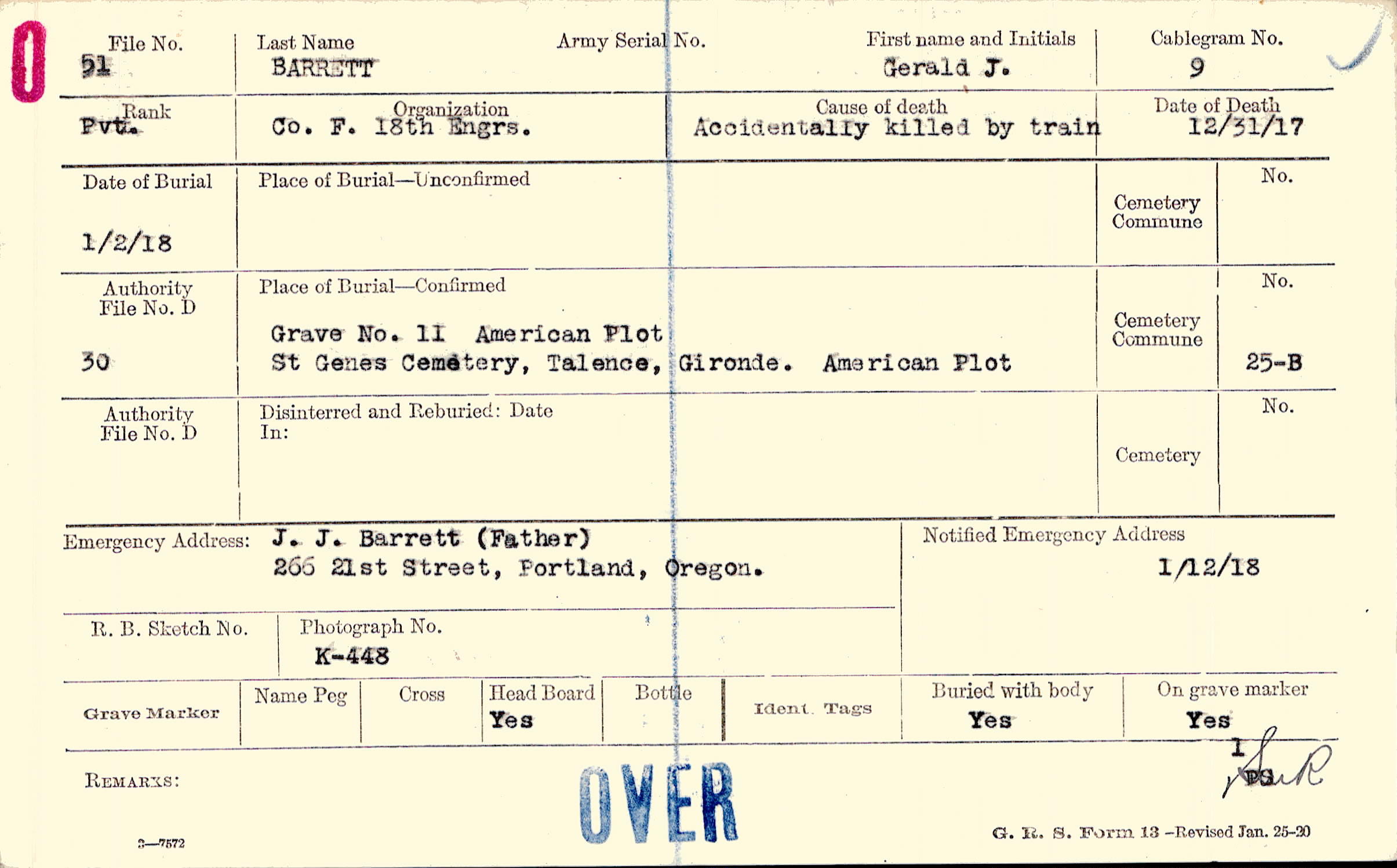 J. J. Barrett (Father), 266, 21st Street, Portland, Oregon