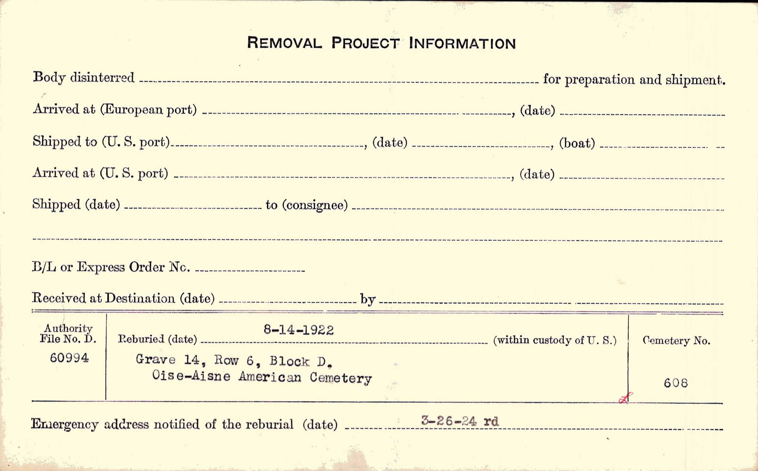 | Permanent Burial in Foreign Cemetery |