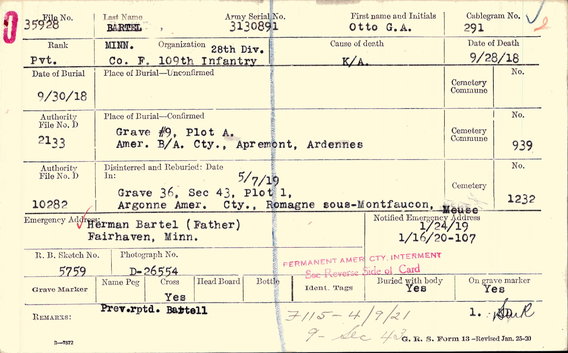 Grave #9, Plot A, Amer. B/A Cty., Apremont, Ardennes