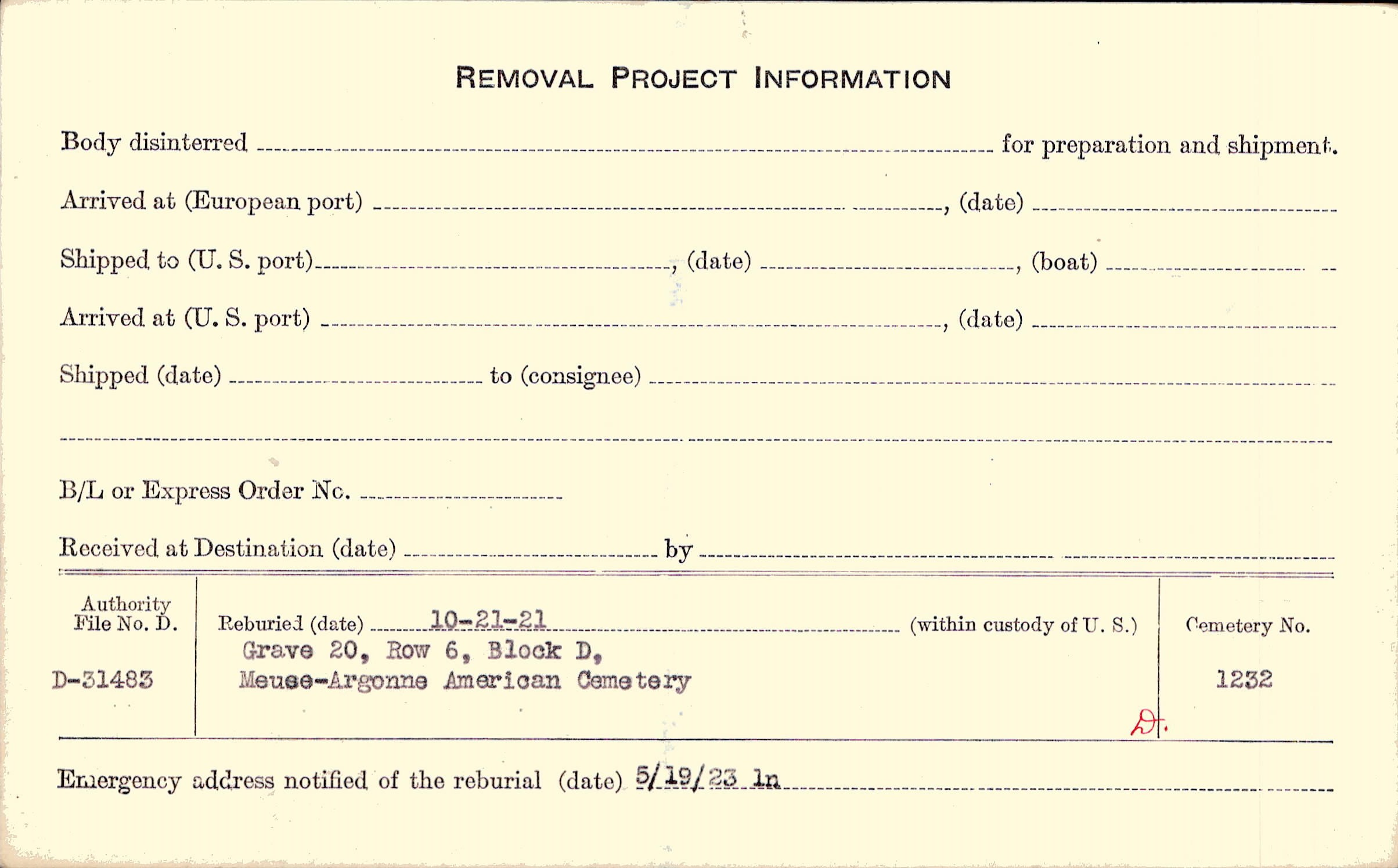 | Permanent Burial in Foreign Cemetery |