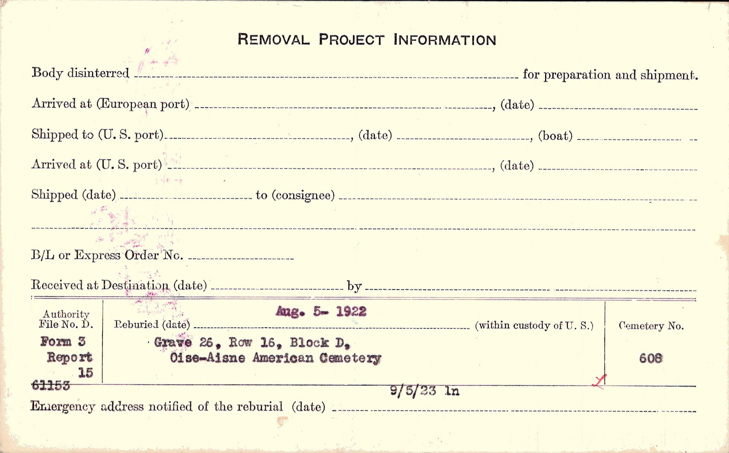 Grave 100, Amer. Battlearea Cty., Juvigny, Aisne