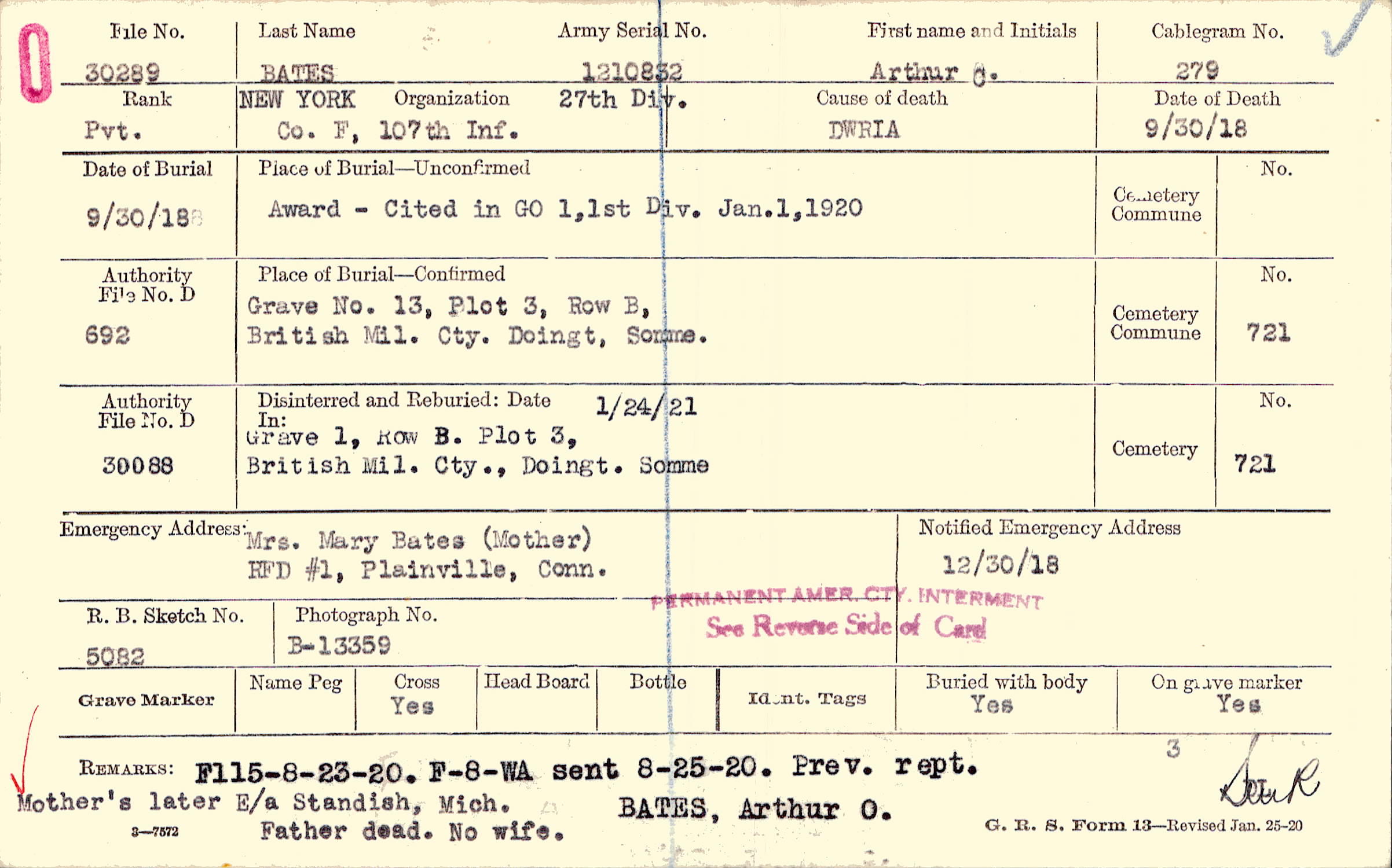Mrs. Mary Bates (Mother), RFD #1, Plainville, Conn.