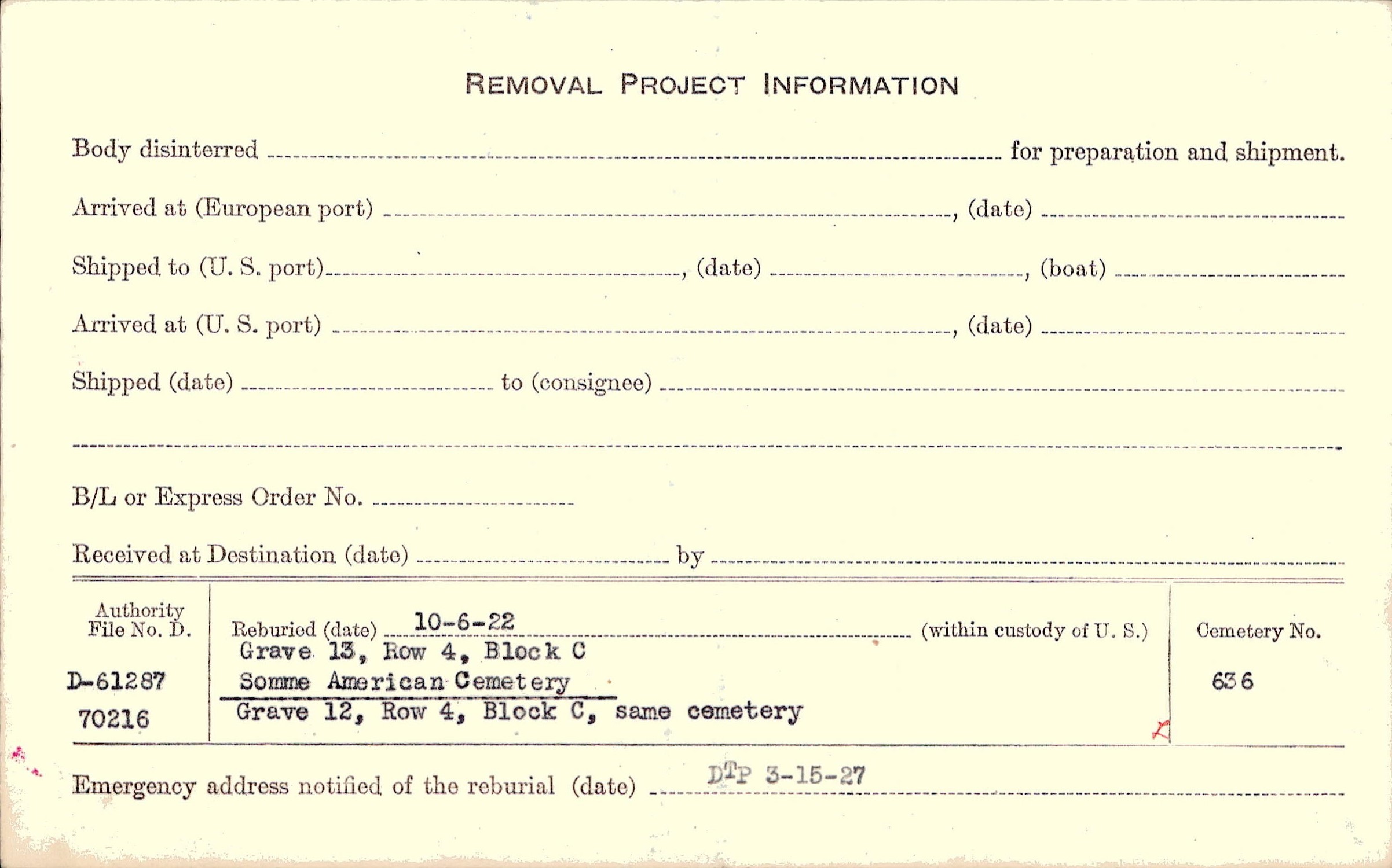 Prior Burial in Foreign Cemetery |
