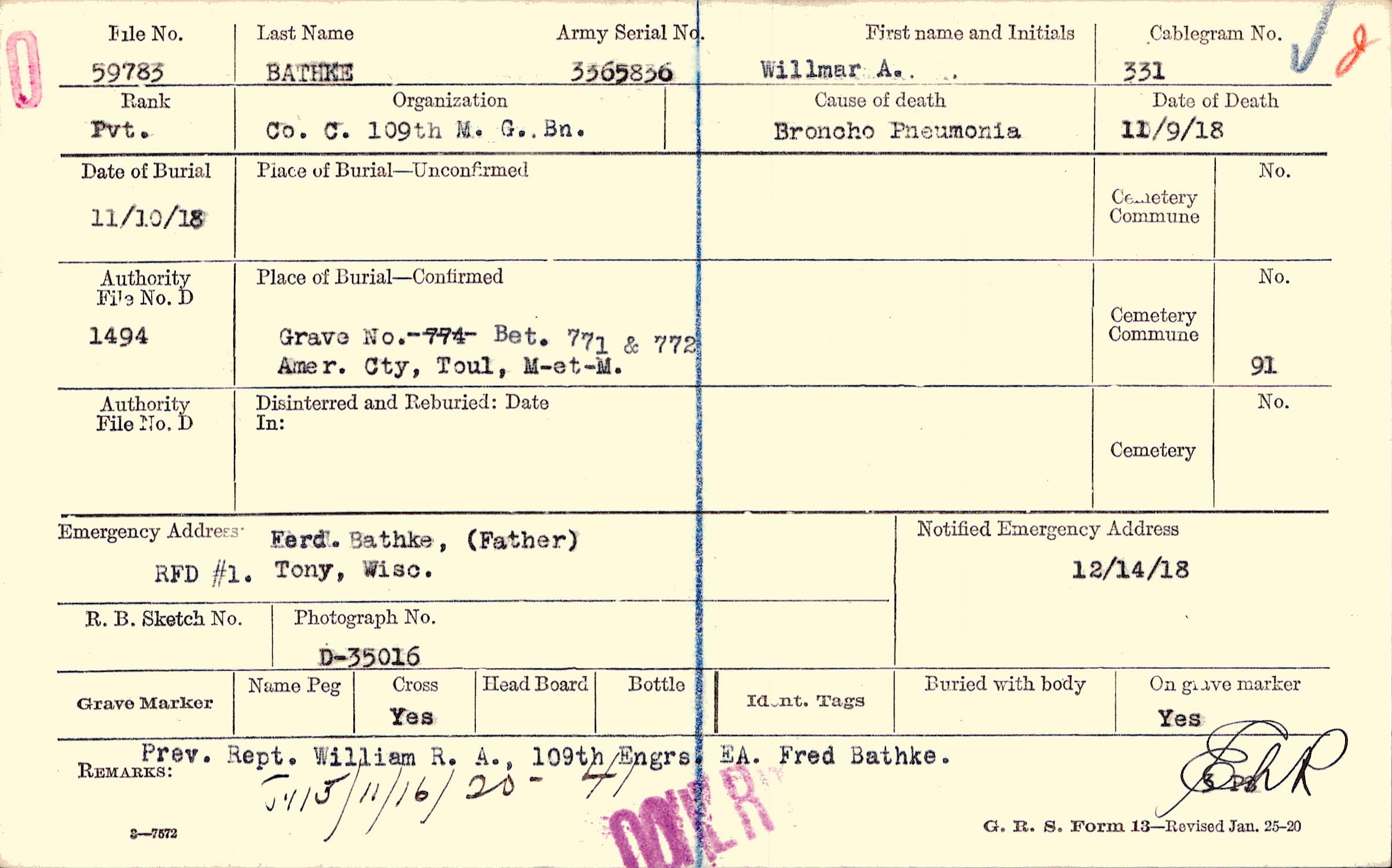 Grave , Bet. 771 & 772, Amer. Cty., Toul, M-et-M