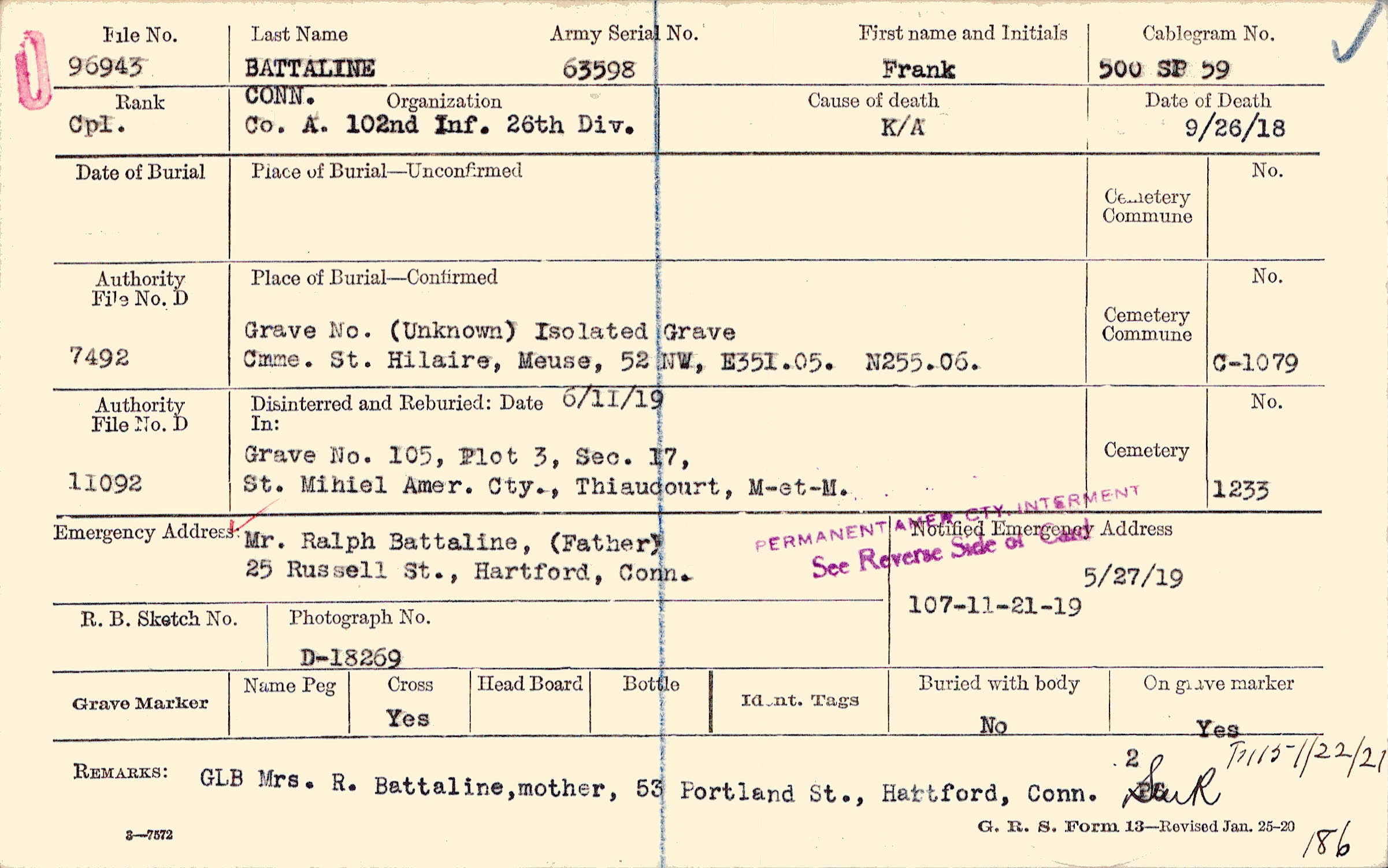 GLB Mrs. R. Battaline, mother, 53 Portland St., Hartford, Conn., F115 1/22/21 186