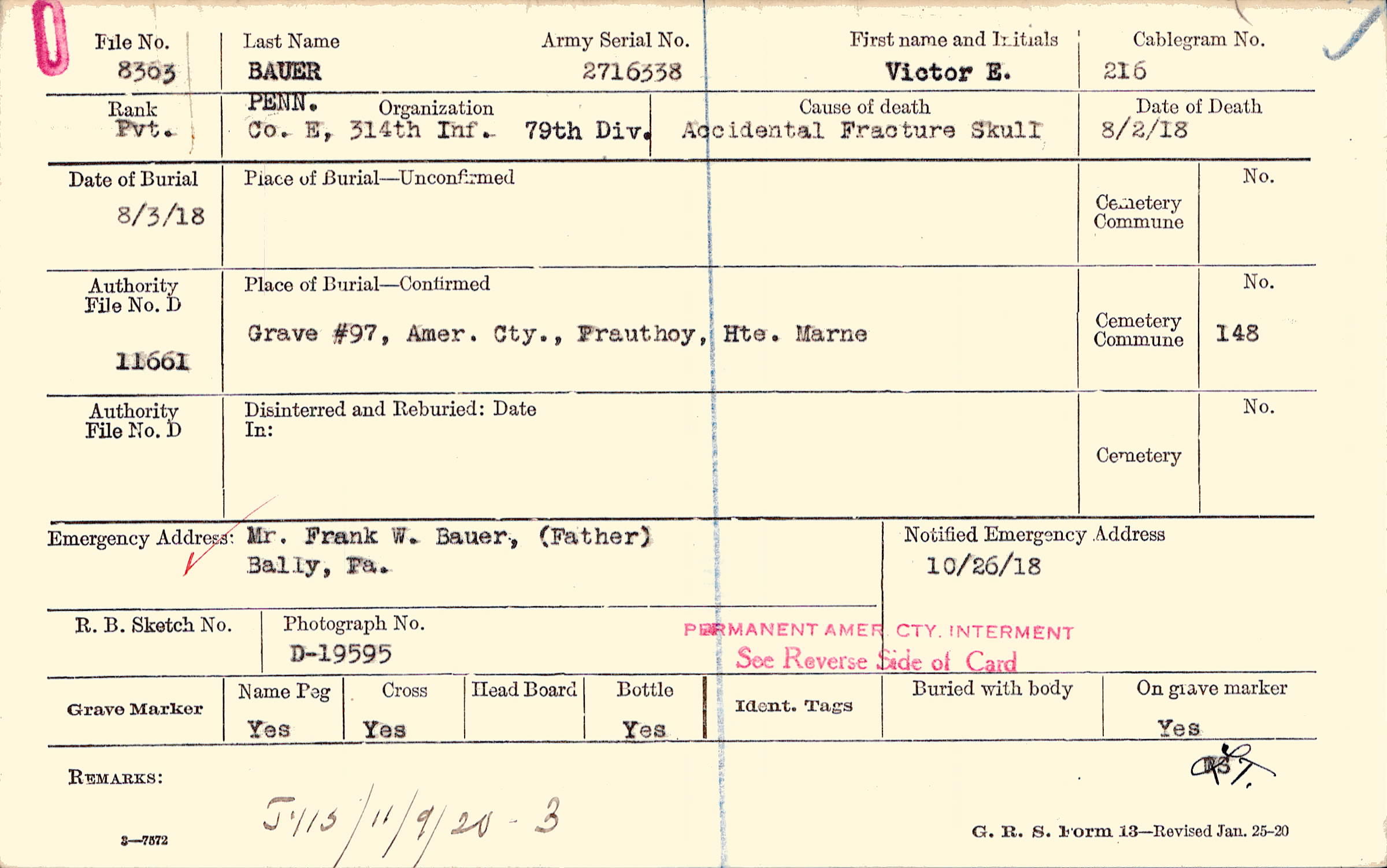 Grave #97, Amer. Cty., Prauthoy, Hte. Marne