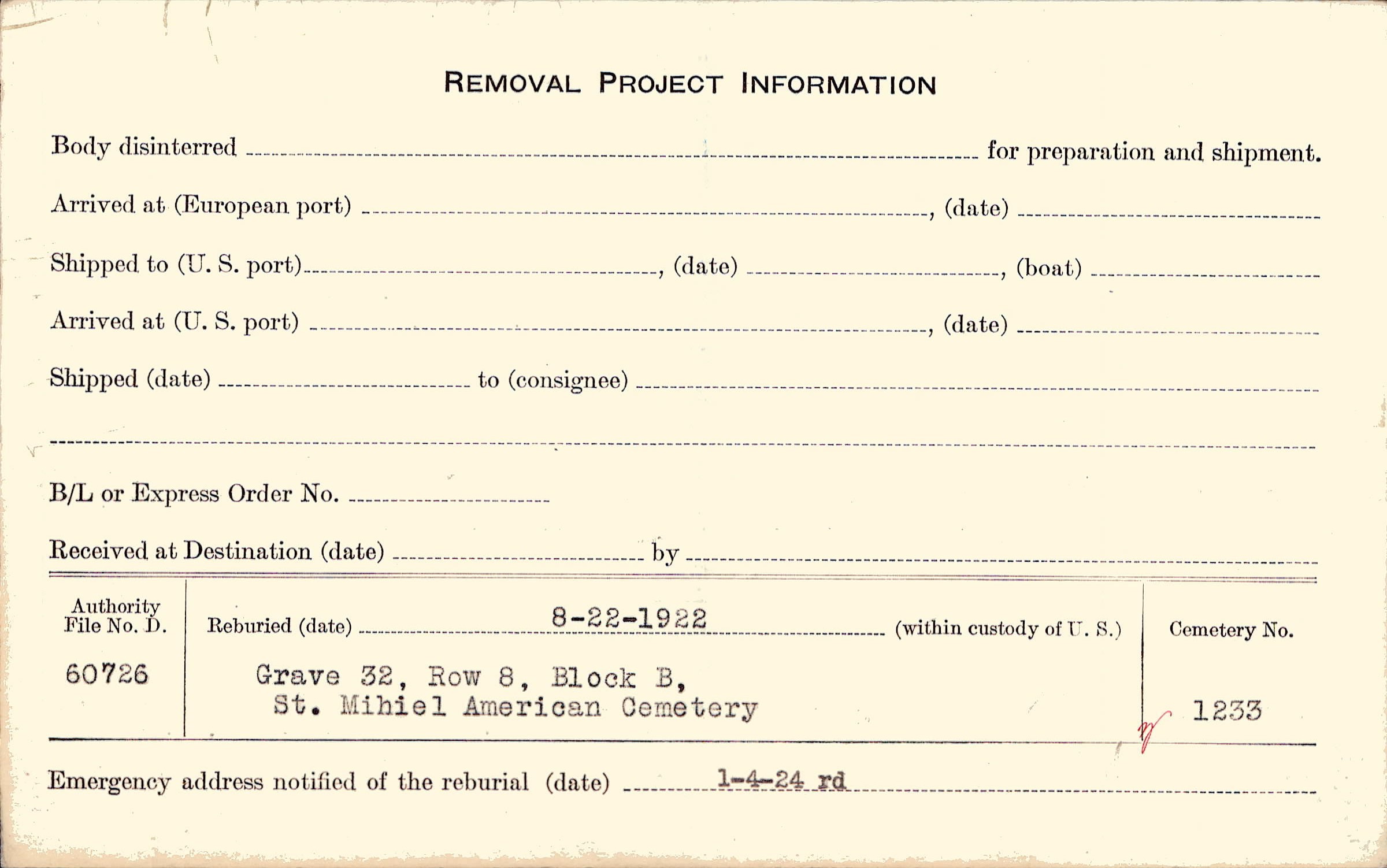 | Permanent Burial in Foreign Cemetery |