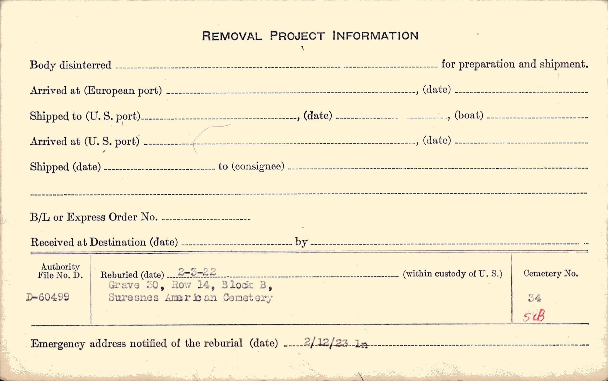 | Permanent Burial in Foreign Cemetery |