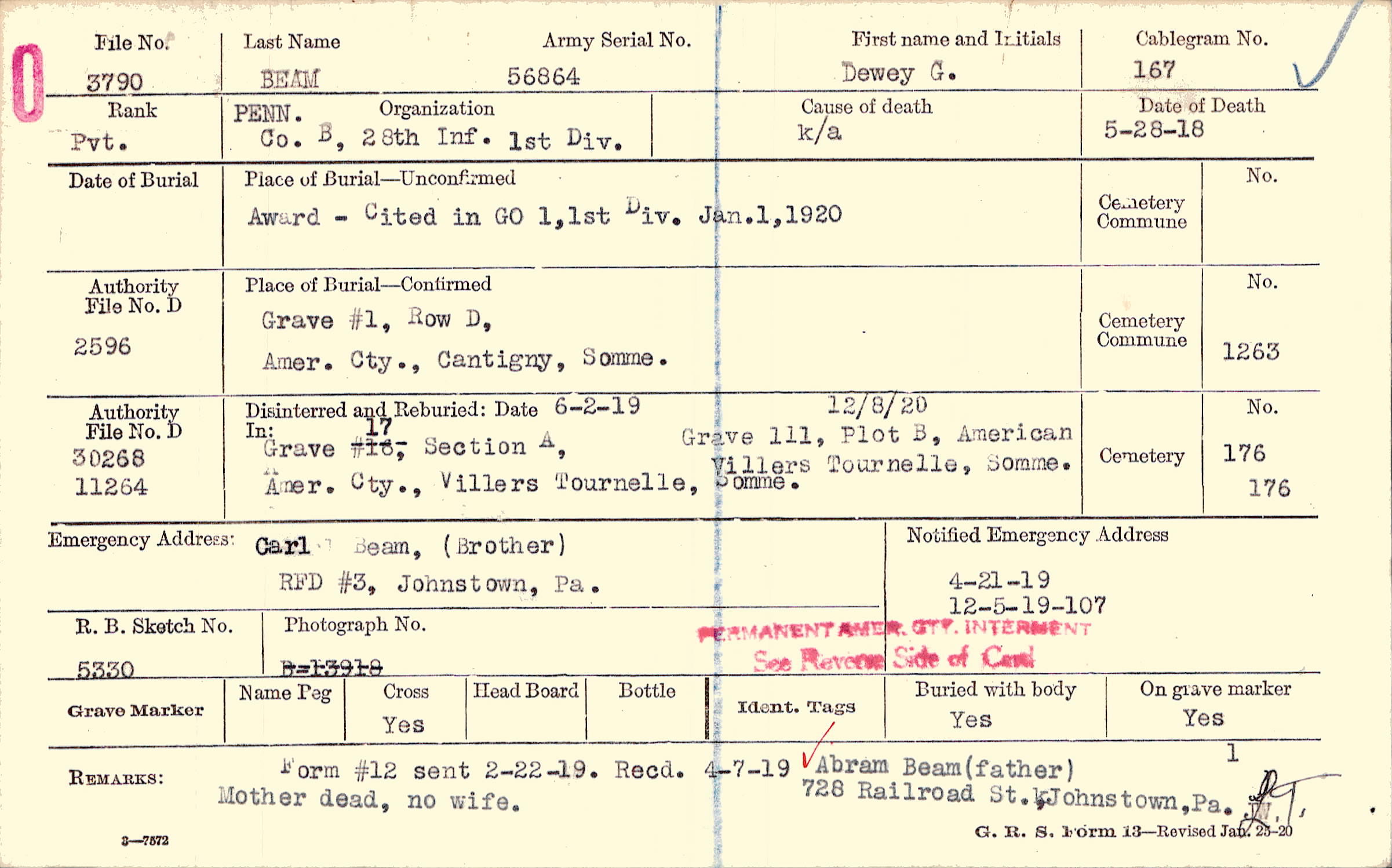 Carl Beam, (Brother), RFD #3, Johnstown, Pa.