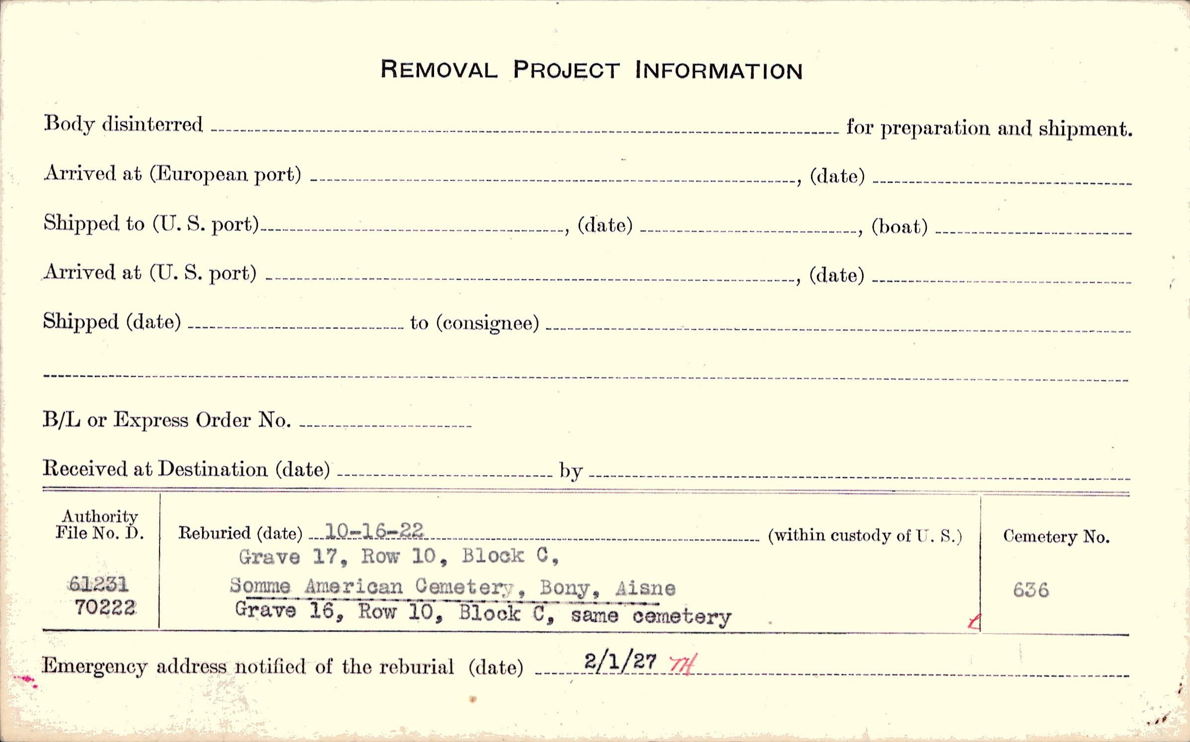 Grave #1, Row D, Amer. Cty., Cantigny, Somme.