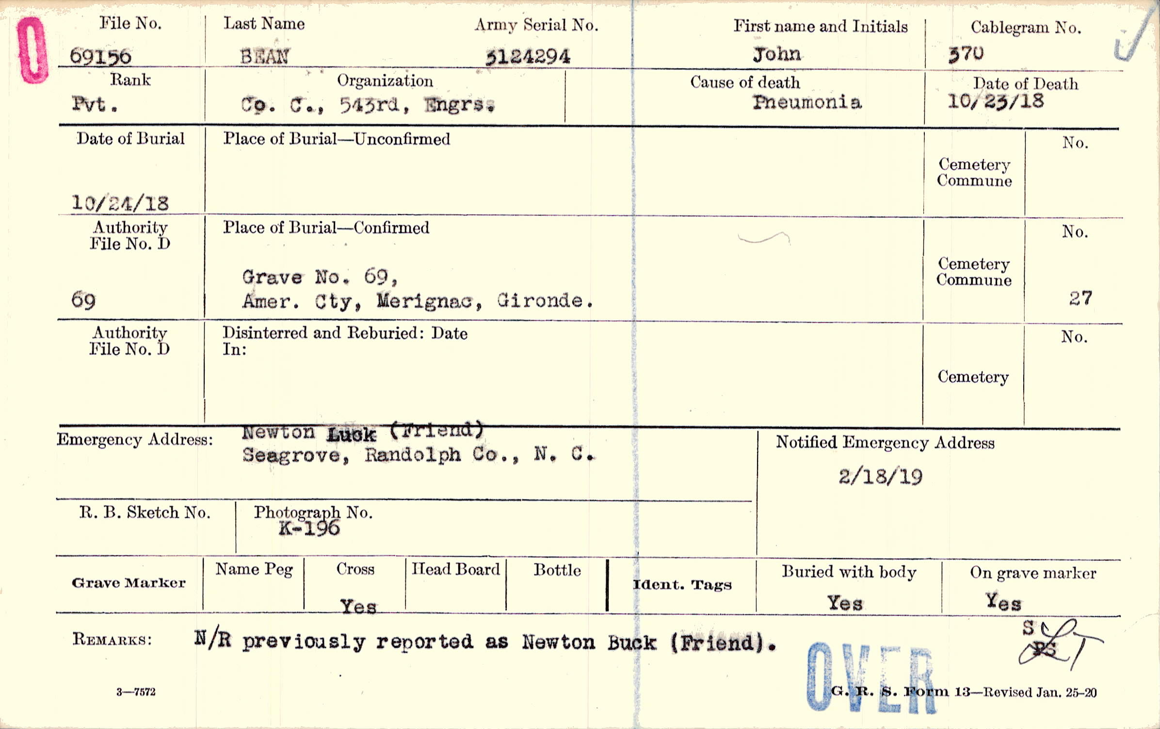 Grave 69, Amer. Cty., Merignac, Gironde.