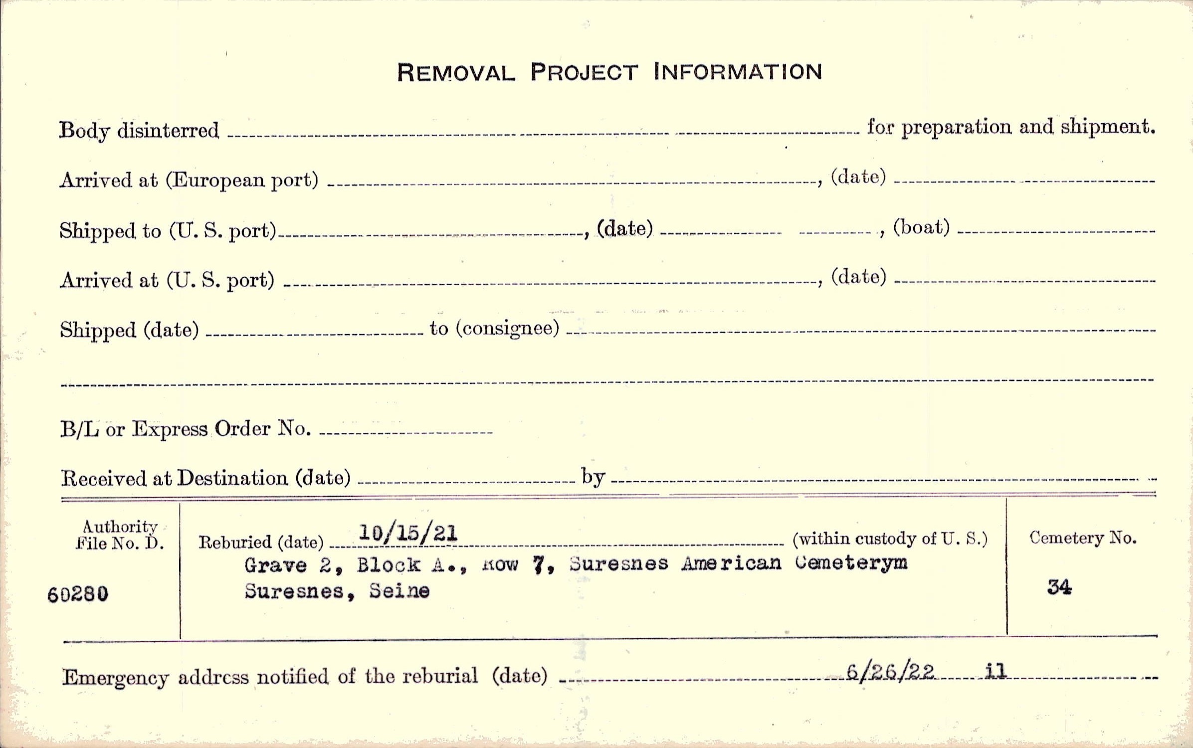 | Permanent Burial in Foreign Cemetery |